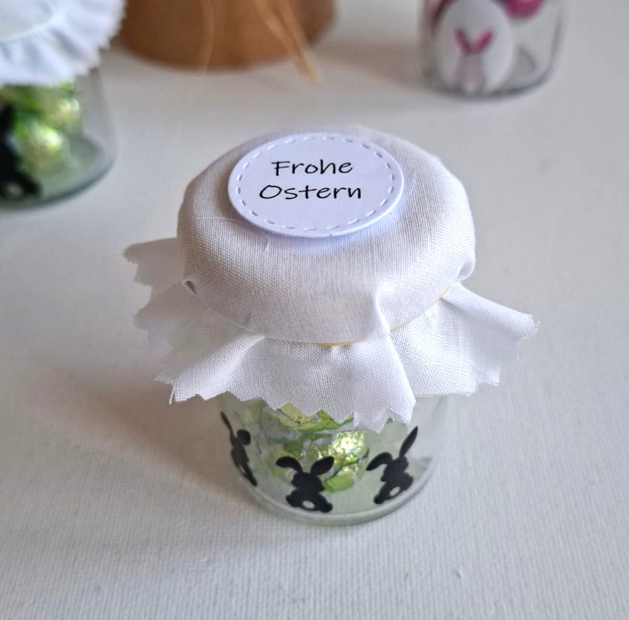 Ich hatte einmal Lust mit Rub Ons zu arbeiten und die Mini Marmeladengläser eigneten sich dafür hervorragend.