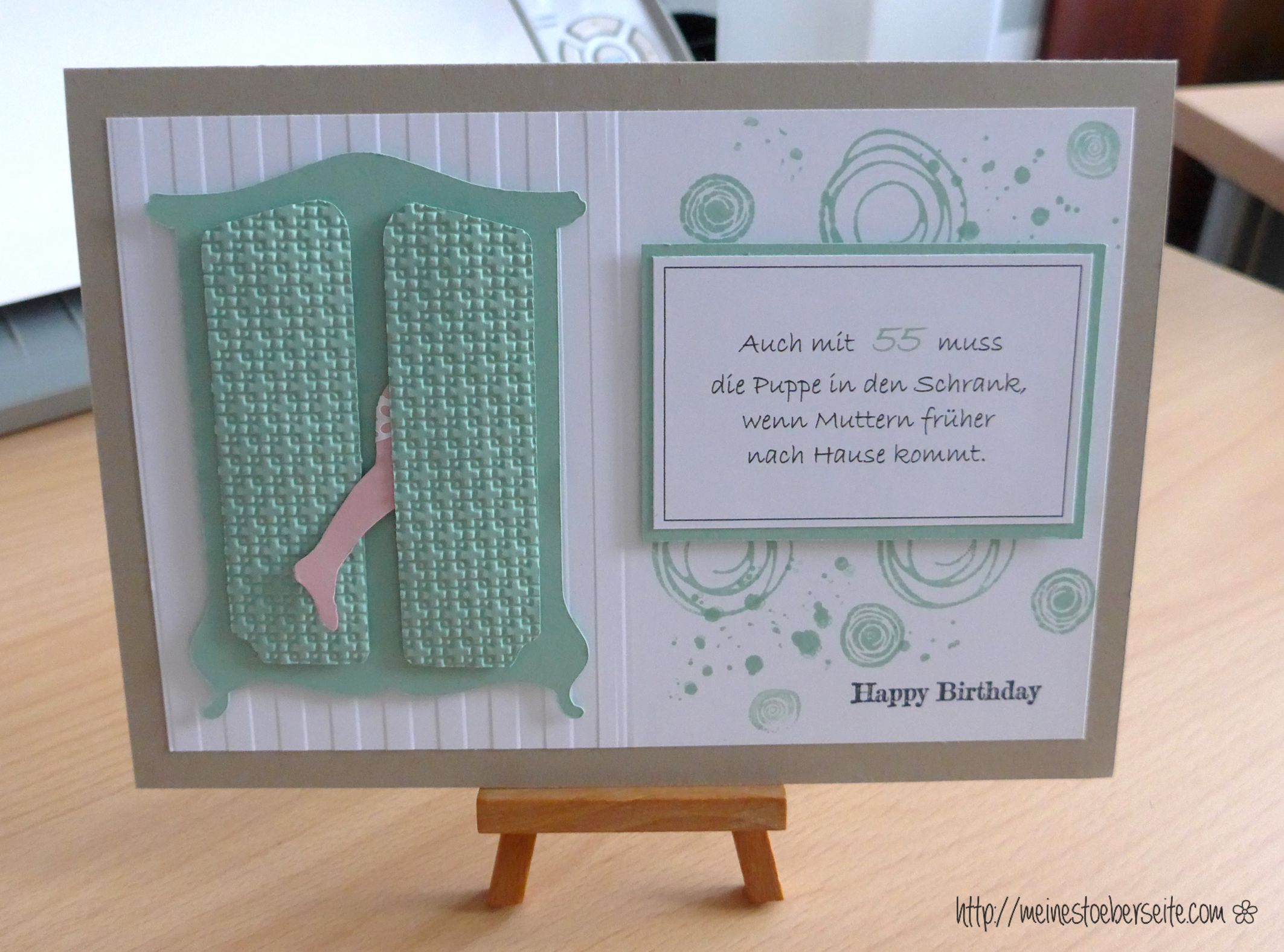 Im Büro können wir, dank Gleitzeit und Überstunden, auch einmal eher Feierabend machen und da ist es ein Running Gag geworden, wenn die Kollegin ihrem Freund vorher Bescheid sagt … als müsse er schnell seine Puppe verschwinden lassen … weil Muttern wieder früher kommt . 😉