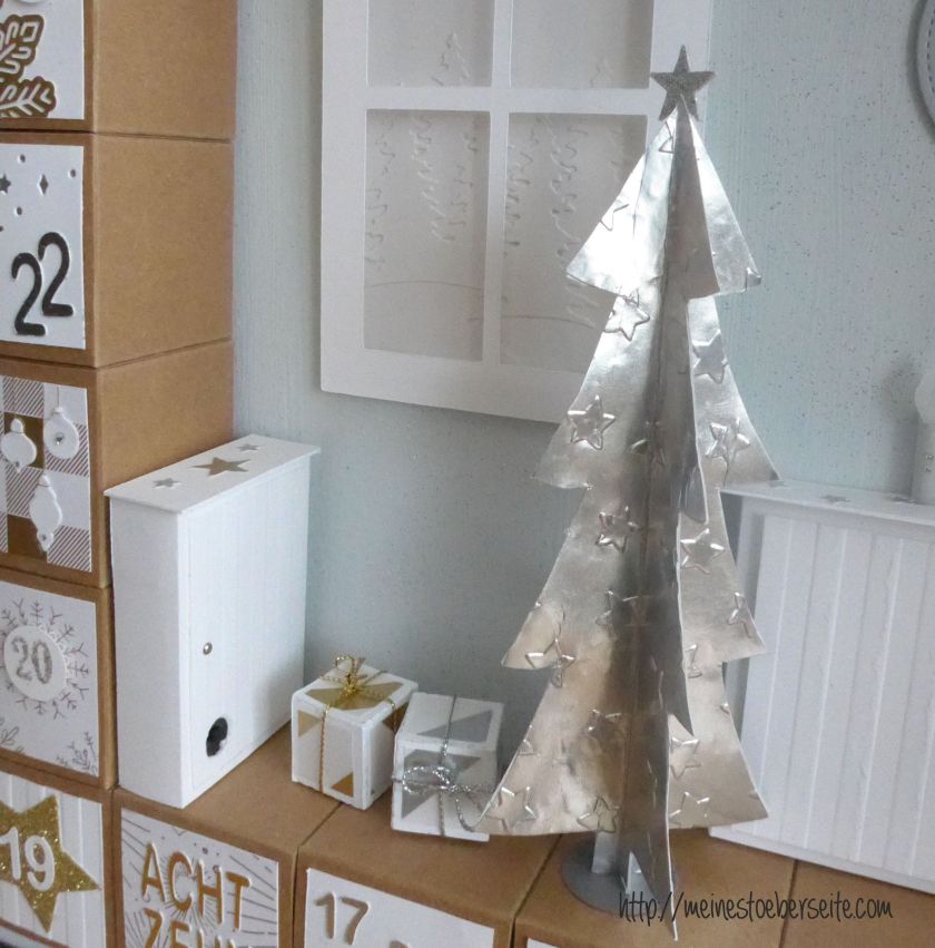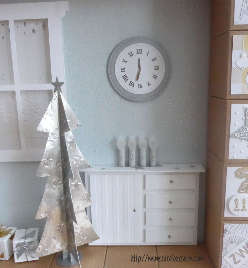 9. Jetzt war das Wichtigste an Ort und Stelle und es wurden nur noch der Baum, die Päckchen und das kleine Schränkchen für die Batterie verarbeitet…mit Magneten an die Wand, da man die Batterien ja mal auswechseln muss.