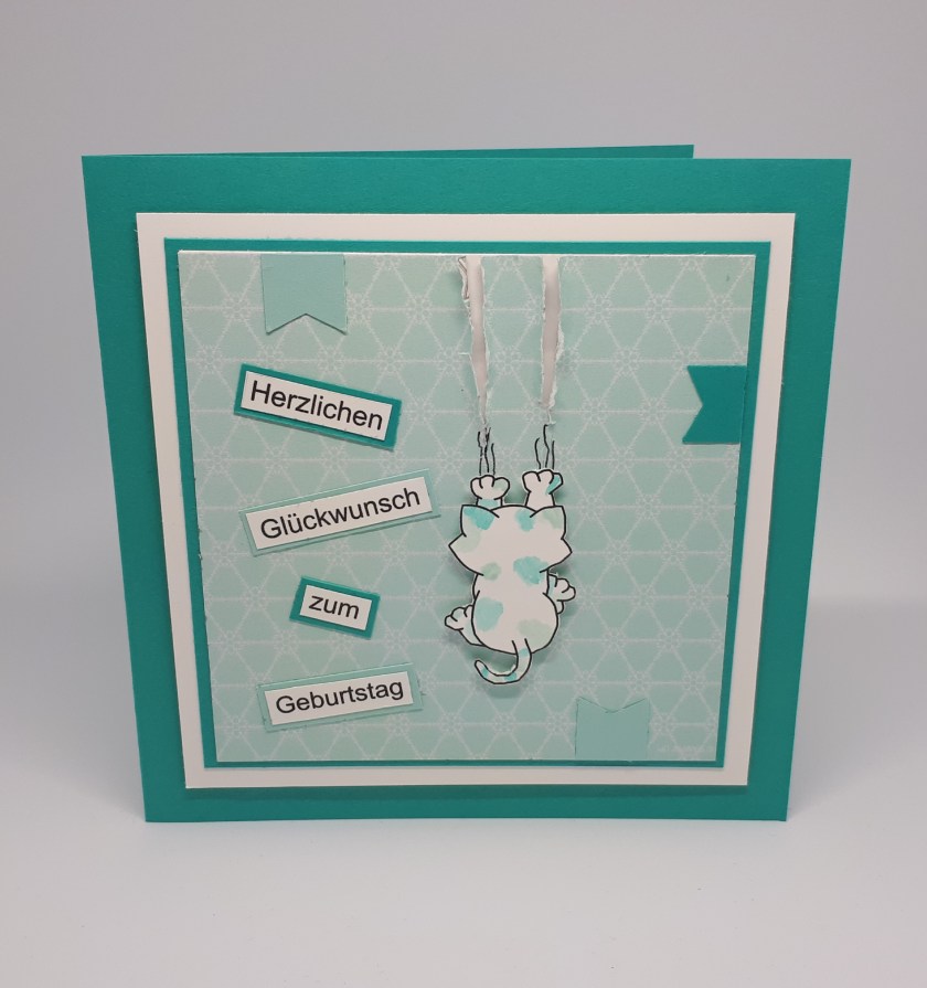 Ich brauchte eine Karte für einen Katzenliebhaber, welch Glück das ich vor kurzem diese niedliche kratzende Katze gefunden hatte. Da ich dieses Stempelset allerdings nicht besitze, musste ich sie einmal selber malen.