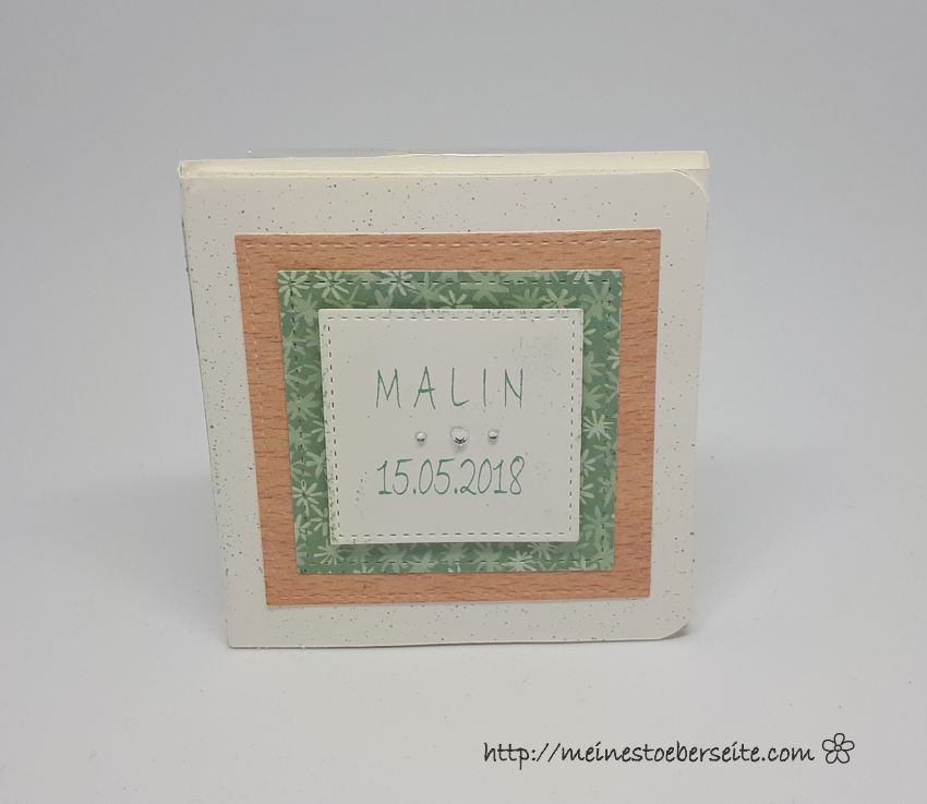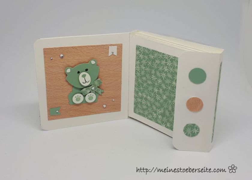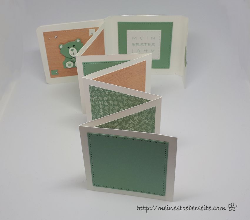 Das kleine Minialbum enthält 12 leere Seiten, für vllt. monatliche Fotos im ersten Jahr.