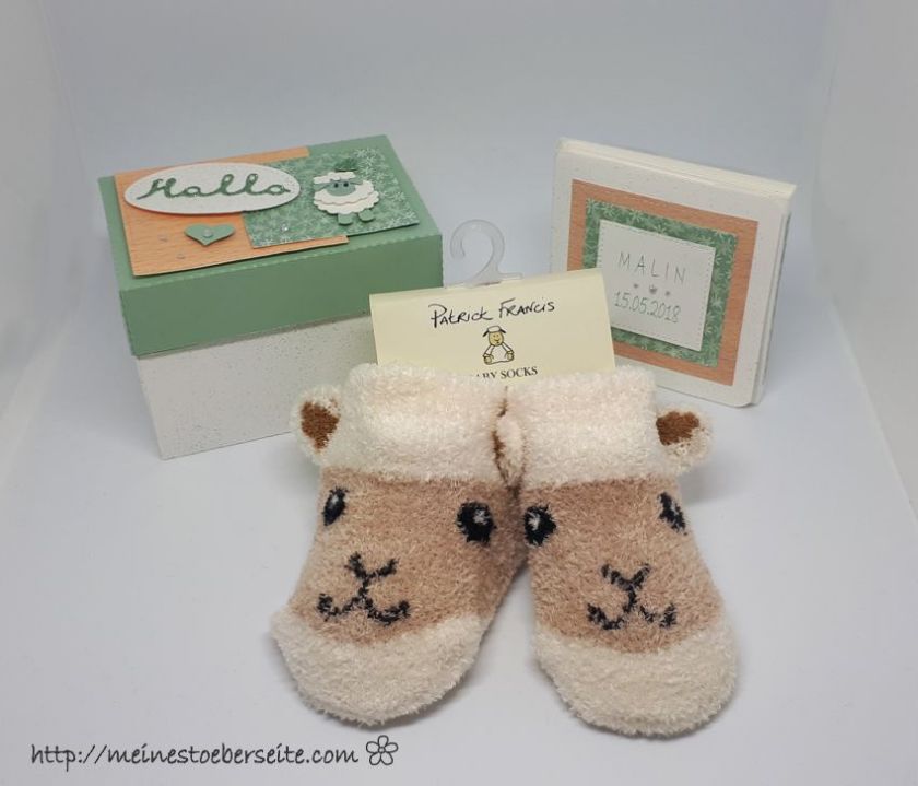 Es geht los … das erste Baby, einer Freundin unserer Tochter, wurde geboren und im Auftrag unserer Tochter, sollte ich diese Box gestalten.