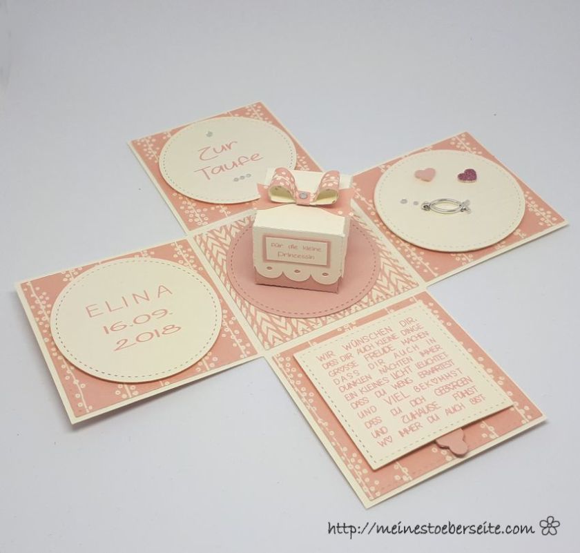 813 Explosion Box zur Taufe Eine Box zur Taufe und eine Box zur Geburt, die aber noch nicht fertig ist, da der Geburtstermin erst im Oktober/November ist. Gefällt mir Wird geladen …