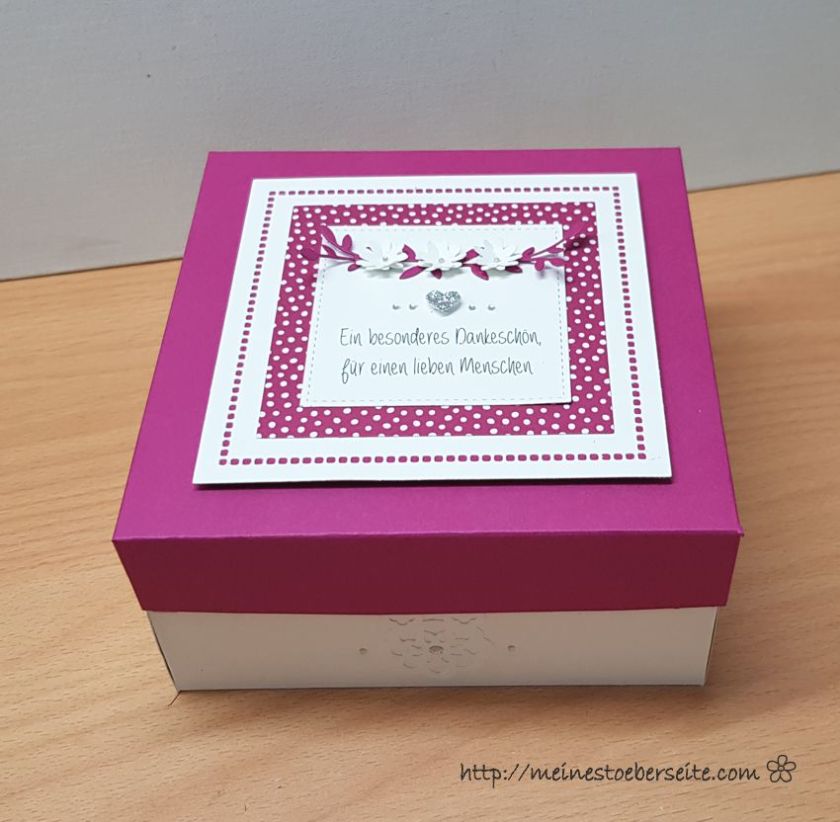 Die Box hat die Maße 14 x 14 cm jeweils 2 x 2 Boxen à 7x7x7 cm .