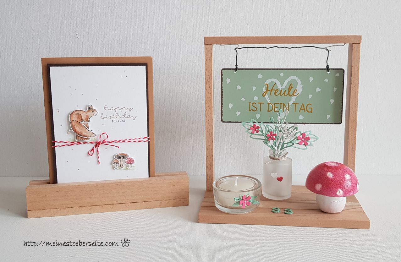 Da die Geburtstagskarte mit Eichhörnchen schon fertig war, musste noch eine Halterung her und ein wenig Deko durfte natürlich auch nicht fehlen.