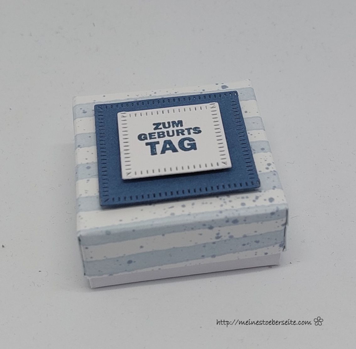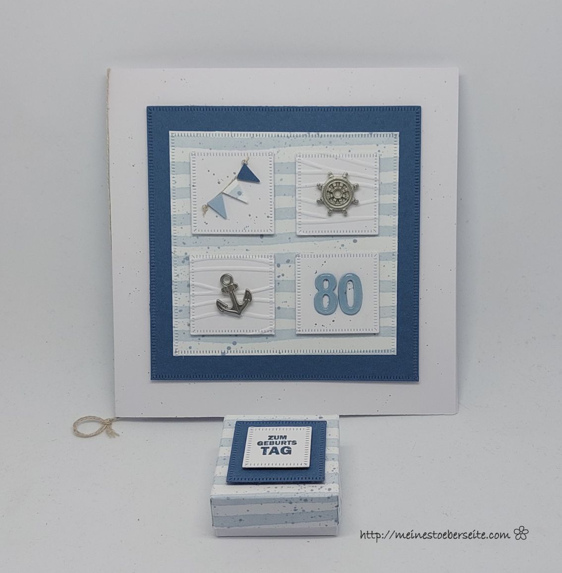 Karte und Box mit kleiner Überraschung, der Faden endet mit einem Palstek nach Außen … fand ich so passend.