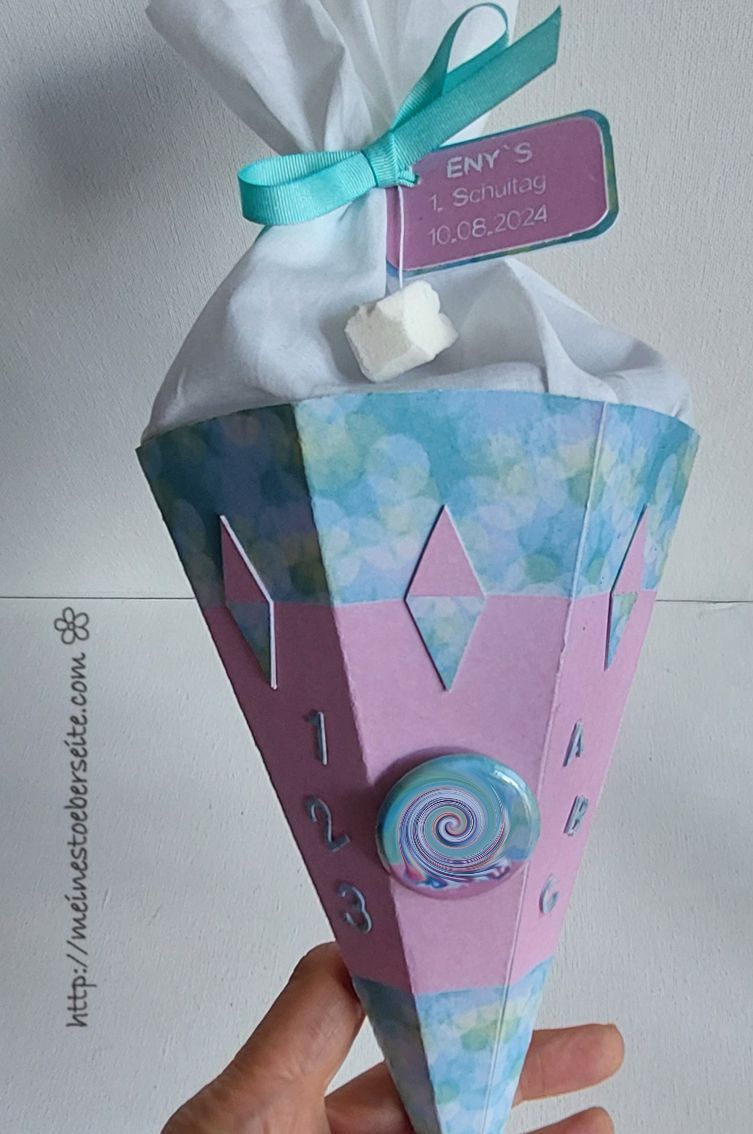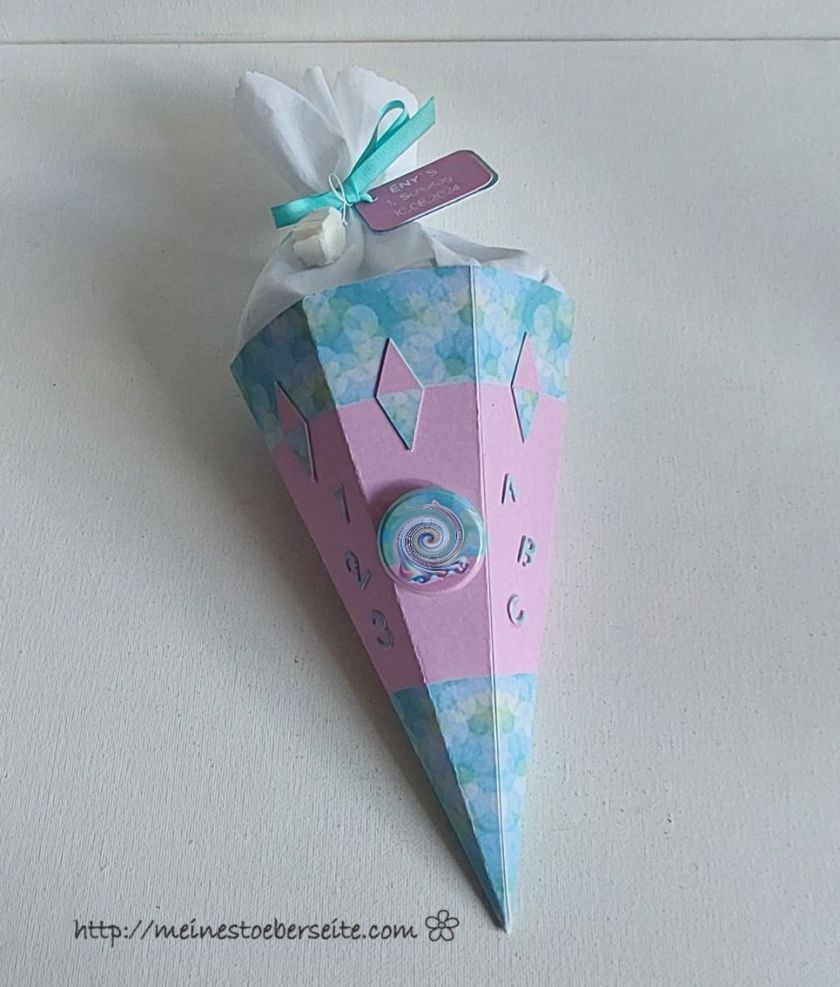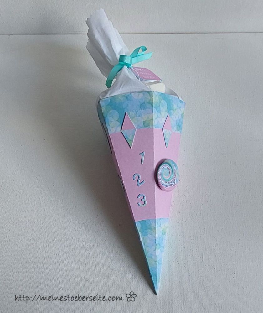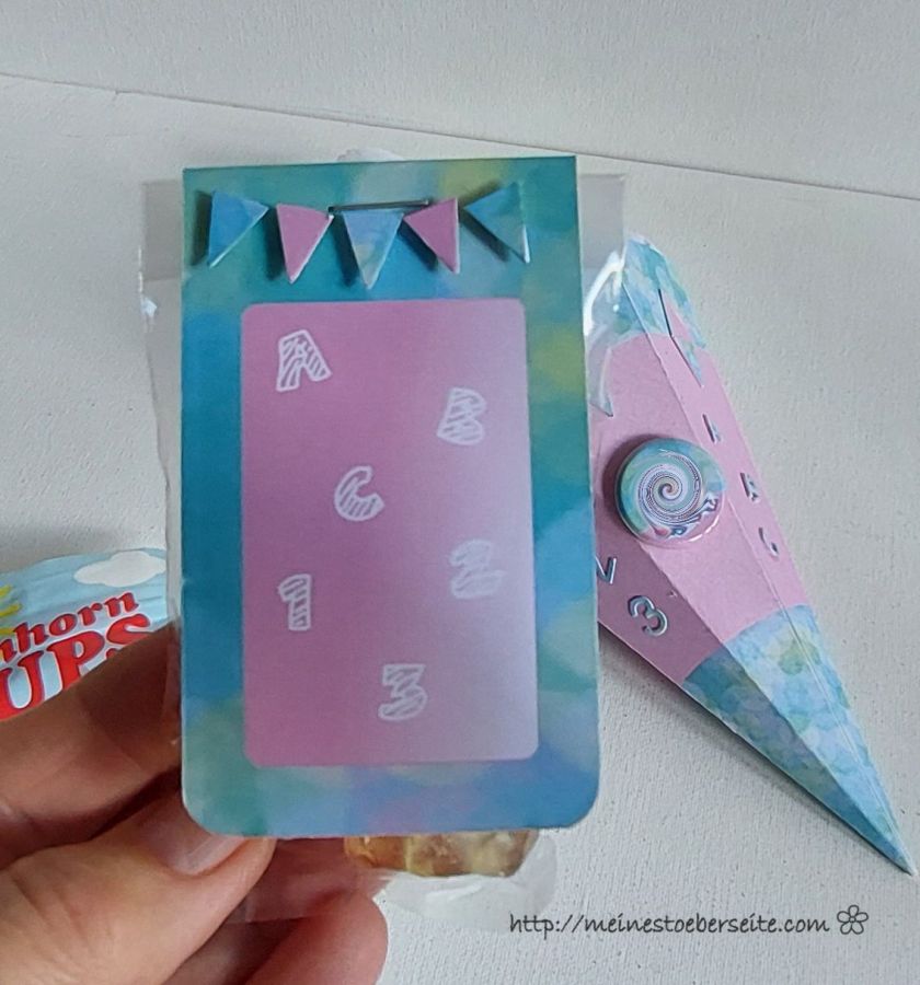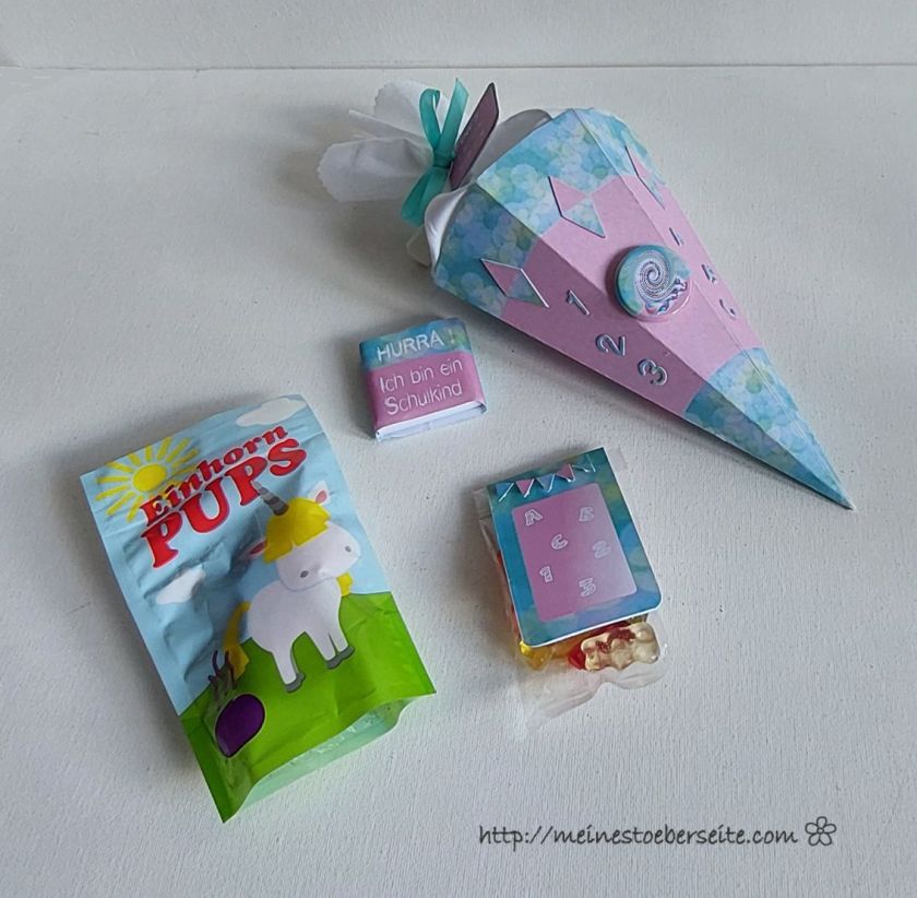 1142 Schultüte Die Tochter einer Kollegin wurde eingeschult und da habe ich, als kleines Geschenk von Allen, eine zum Schulranzen passende Mini Schultüte gebastelt. kleine Tüte mit Gummibären kleine Tafel Schokolade Gefällt mir Wird geladen …