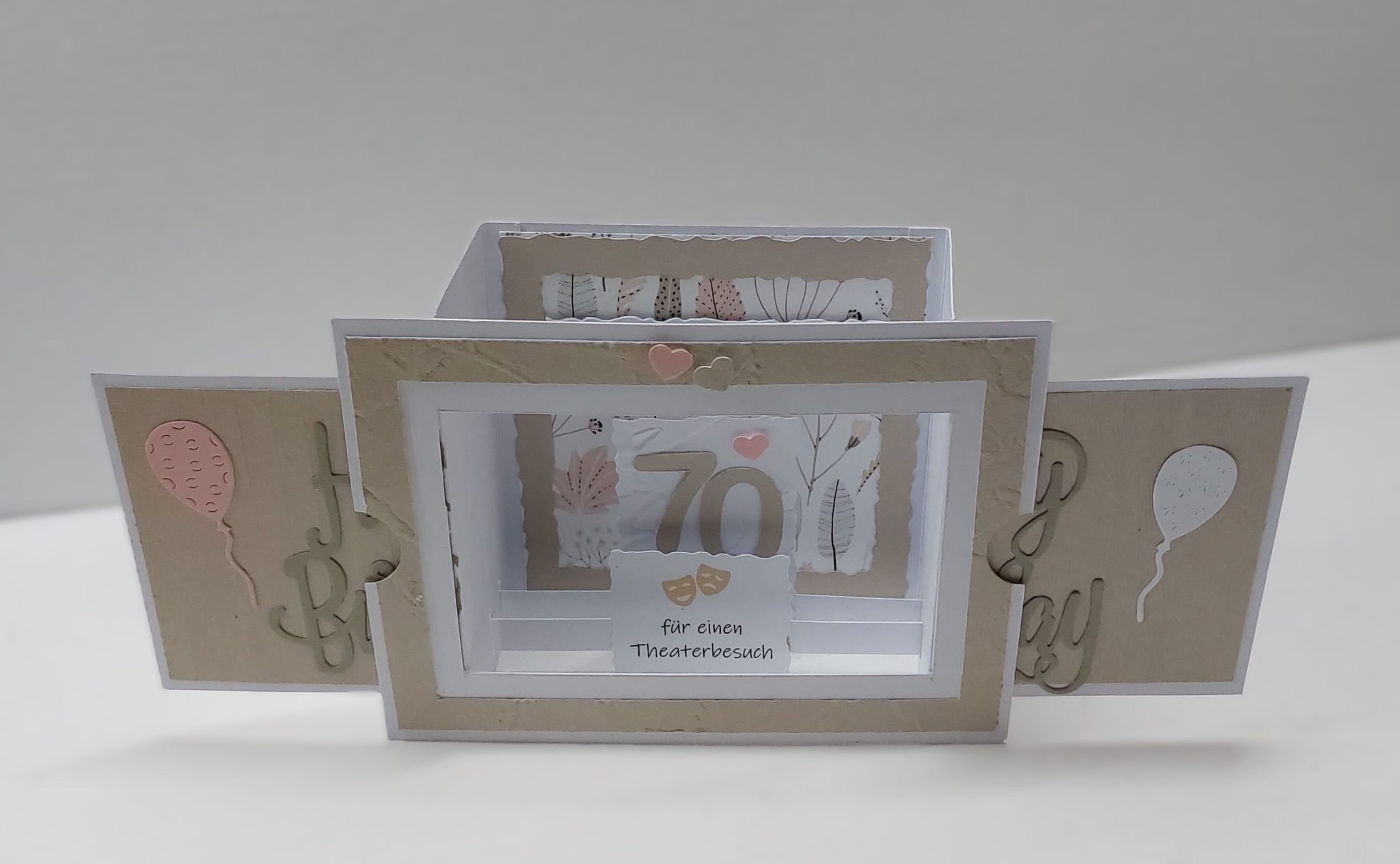 .. da es sich um einen Gutschein für einen Theaterbesuch handelt, habe ich versucht, die Schiebeflügel wie einen Vorhang aussehen zu lassen.