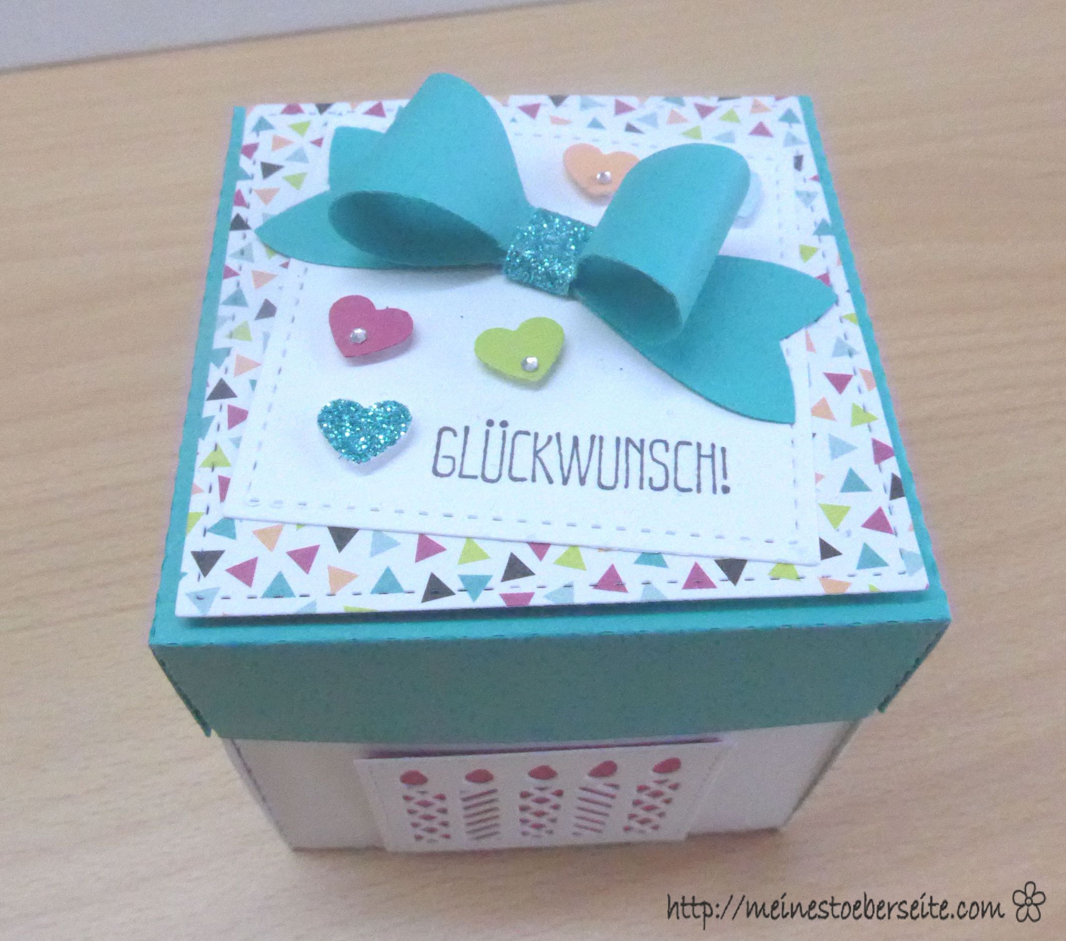 In der Nachbarschaft fand zu Ostern ein 40. Geburtstag statt und da wurde ich gebeten eine Kleinigkeit fertig zu machen. Ich musste ein ganze Zeit überlegen WAS und dann erinnerte ich mich an das Designerpapier von Stampin Up, Perfekte Party (145502). Es war für mein Projekt bestens geeignet.