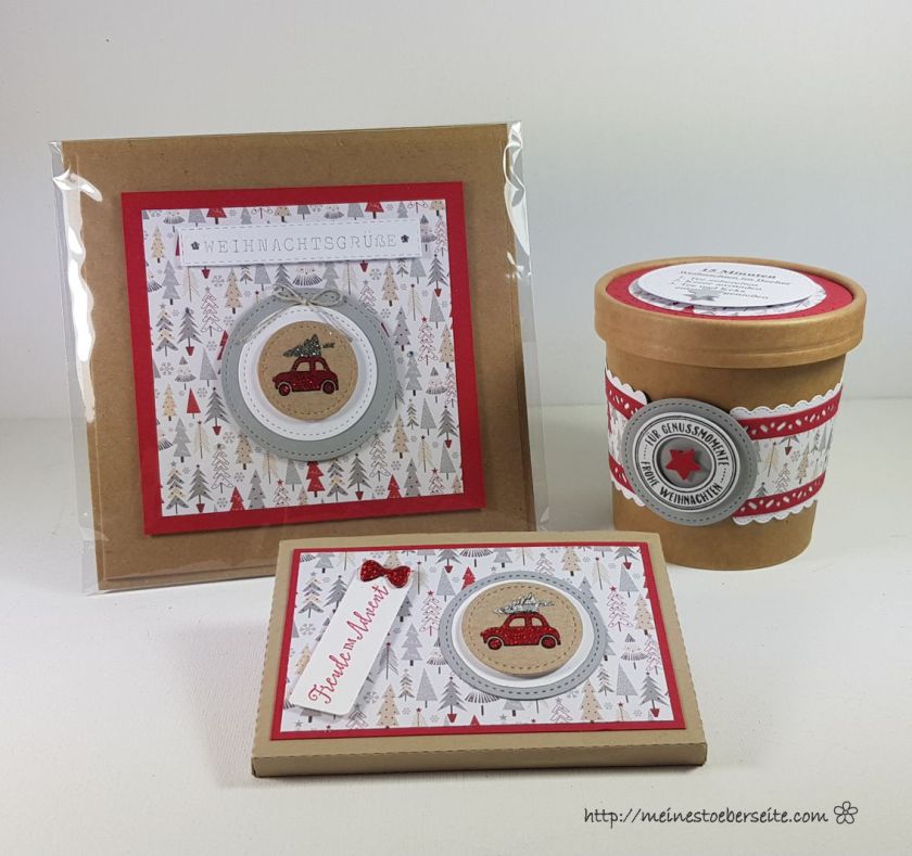 Grundsätzlich verkaufe ich aber auch alles einzeln, damit ich mir nicht für jedes Teil ein neues Motiv ausdenken musste, hatte ich die Idee, jeweils eine Karte, einen Becher und einen Adventskalender To Go im ähnlichen Design zu gestalten und das war gut so.