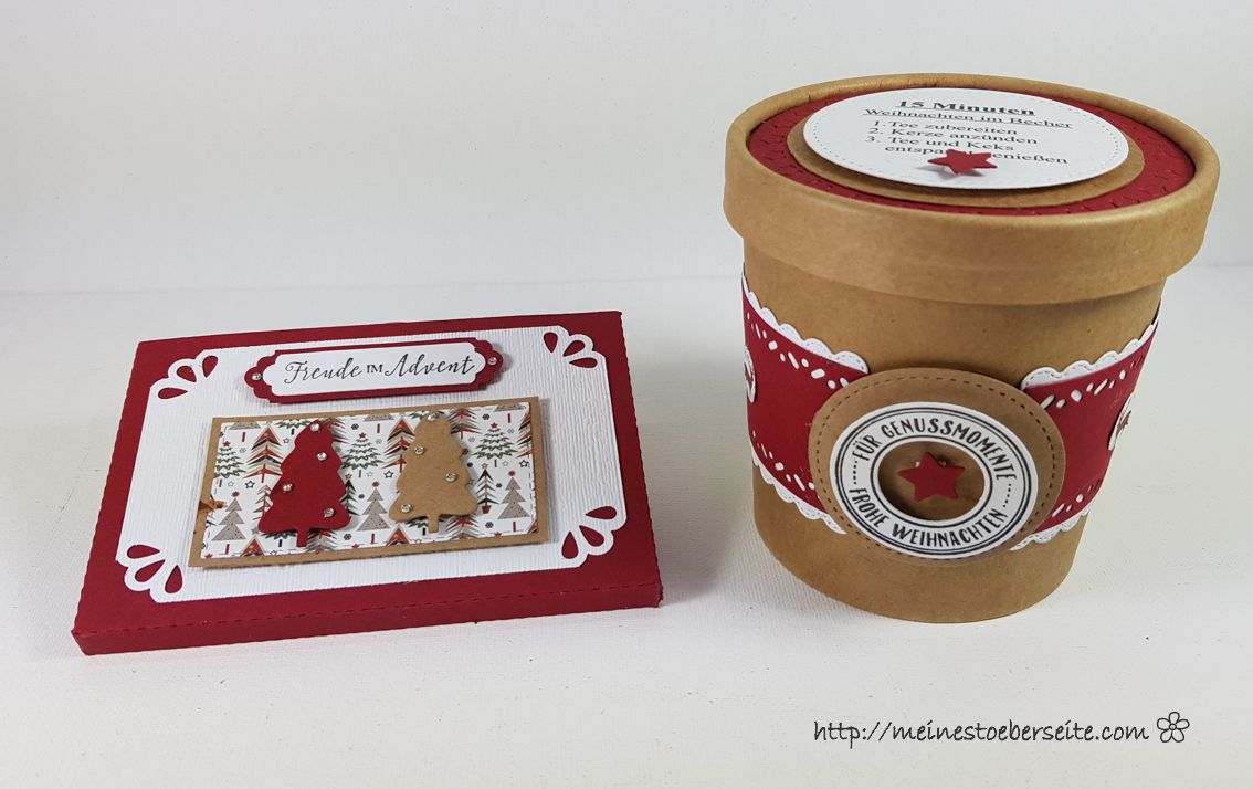 Desweiteren bekam ich von meiner Demo Ilona beim letzten Besuch, 10 Naturbecher geschenkt (10 weiße Becher habe ich mir noch bestellt) und da es von (WERBUNG) Stampin Up im Winterkatalog Stanzformen 153521 für Becherbanderolen gab, war die Idee schnell gefunden.