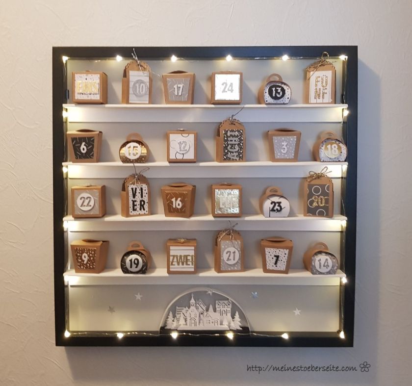 Die letzten Jahre nutzten wir immer einen sehr aufwendig gestalteten Adventskalender, auch wenn dieser immer noch schön ist, musste mal ein anderes Design her. Natürlich auch mit Beleuchtung und jetzt könnte man jedes Jahr wechseln.