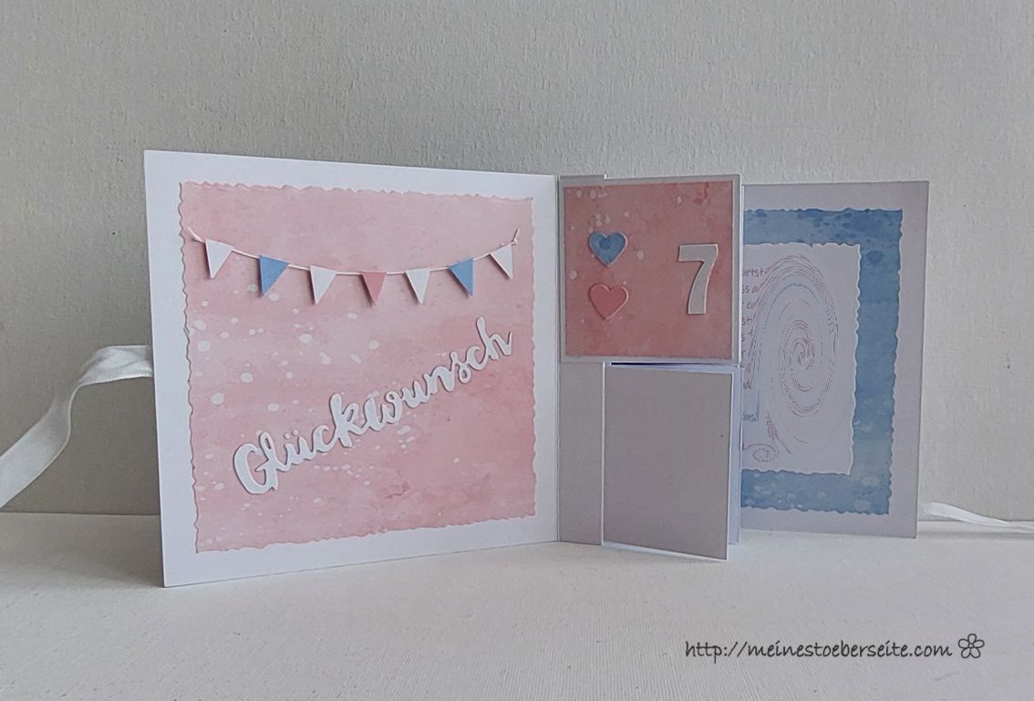 Ist zwar schon länger her, dass ich sie gemacht hatte, aber zu diesen Anlass passt sie natürlich genau. Vorgaben waren: Hellblau/Rosa