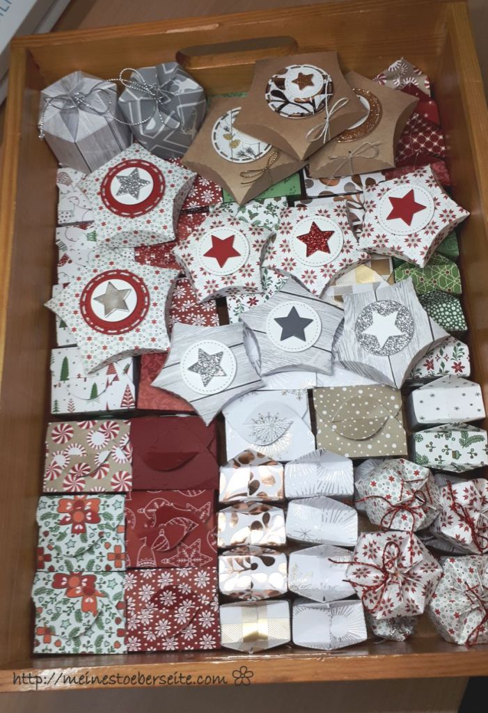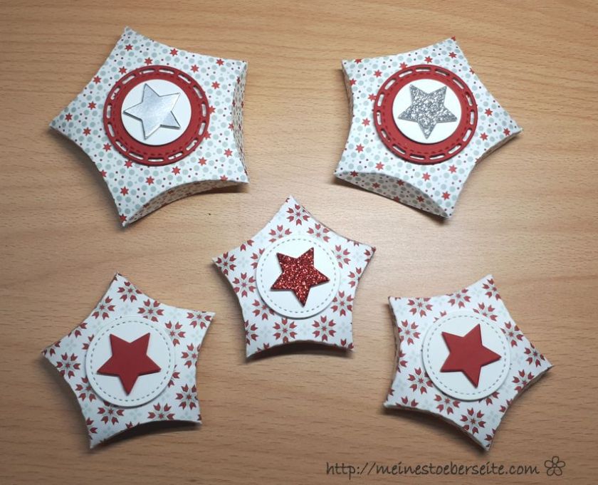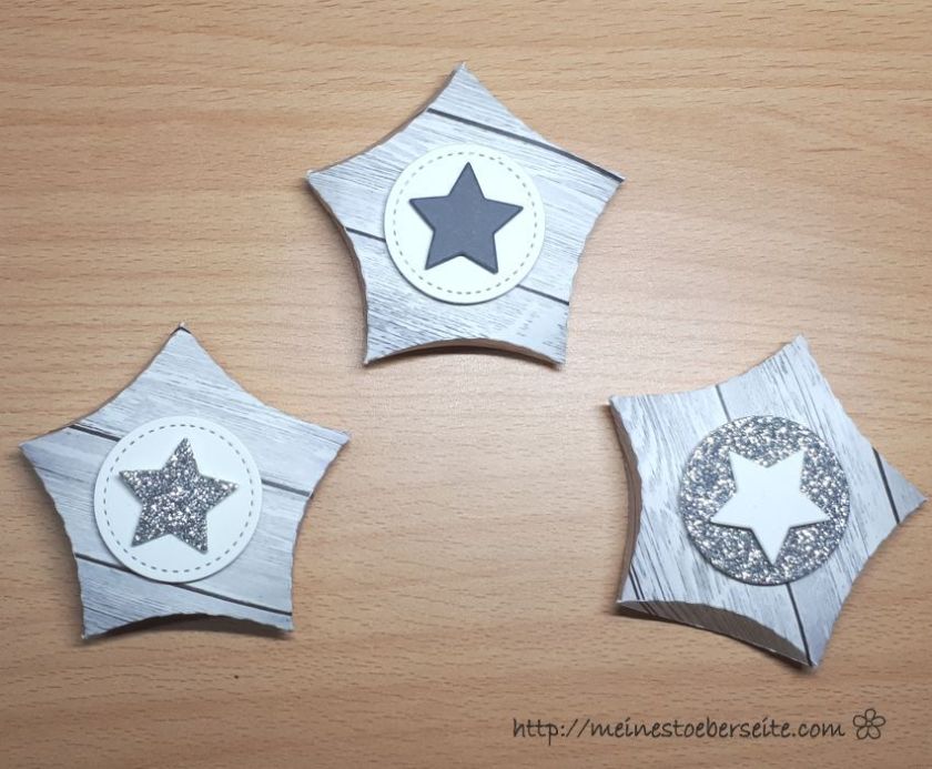 Jetzt habe ich noch ein paar Sternenschachteln dazu gemacht und diese Idee stammt von Kugelig.blog inkl. Plotterdatei, da möchte ich mich doch erst einmal ganz herzlich für bedanken.