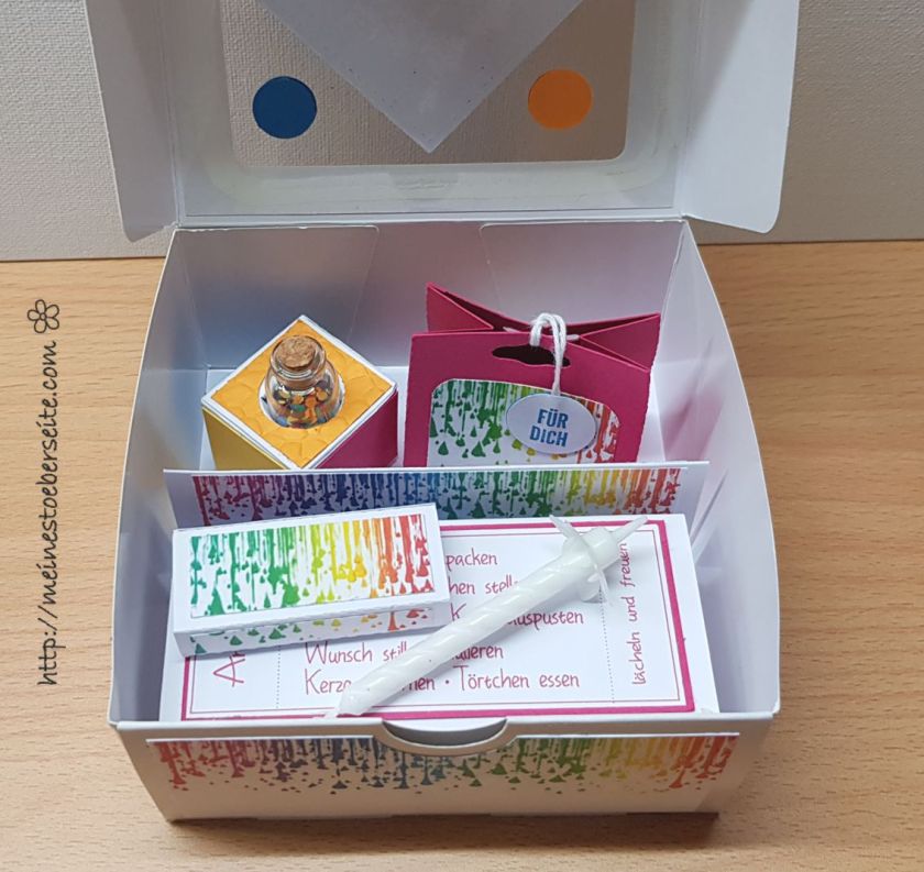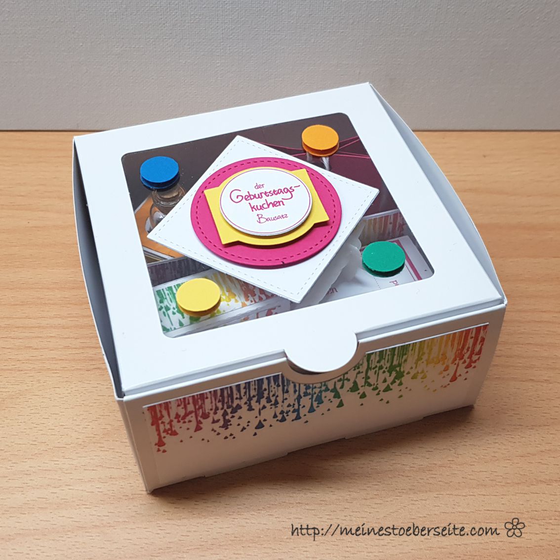 Die Karte lag bereits vor, es fehlte aber noch eine Box für das gesammelte Geld und mir war mal wieder nach einem Geburtstagskuchenbausatz
