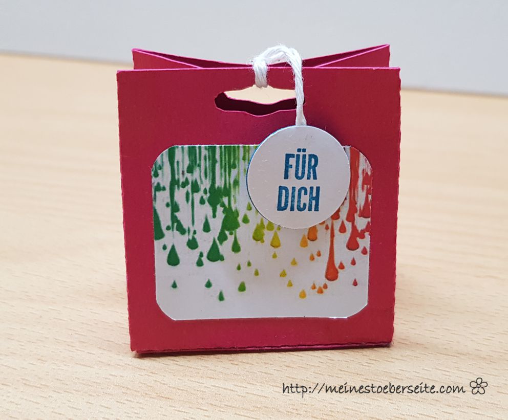 Dieses sieht, bei 4 Würfeln auf Spannung und etwas Konfetti in einer geschlossenen Schachtel, einfach super aus.