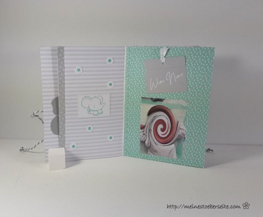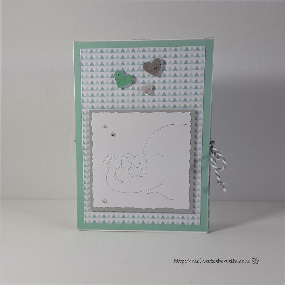 Dieses Minialbum/Karte zur Geburt konnte zwar noch nicht übergeben werden, aber ich werde es schon einmal posten, da die Empfängerin sicherlich nicht auf meinen Blog schaut… sonst kommt die Chronologie durcheinander 😂