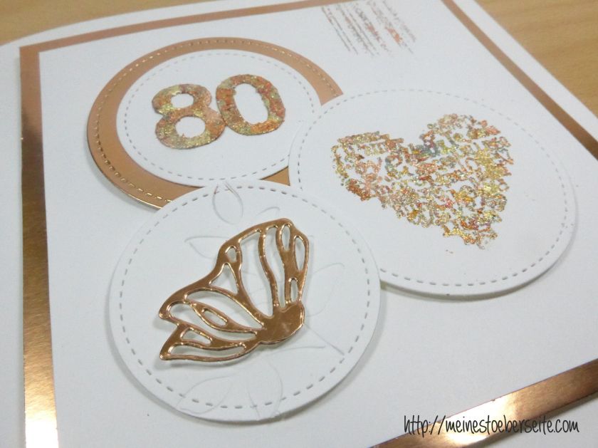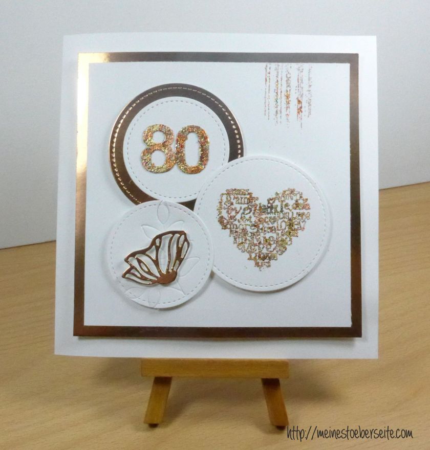 749 80.Geburtstag Bei dieser Karte habe ich mich an meinen wiedergefundenen Kupferflocken ausgetobt. Ist ganz schön geworden finde ich und überall ist es jetzt am glitzern. Merken Merken Gefällt mir Wird geladen …