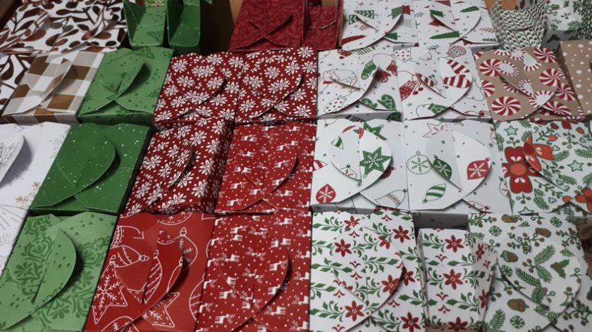Maße Deckel: ein Blatt vom Designerpapierblock (11,4×16,4cm) ringsherum bei 2,4 cm falzen.