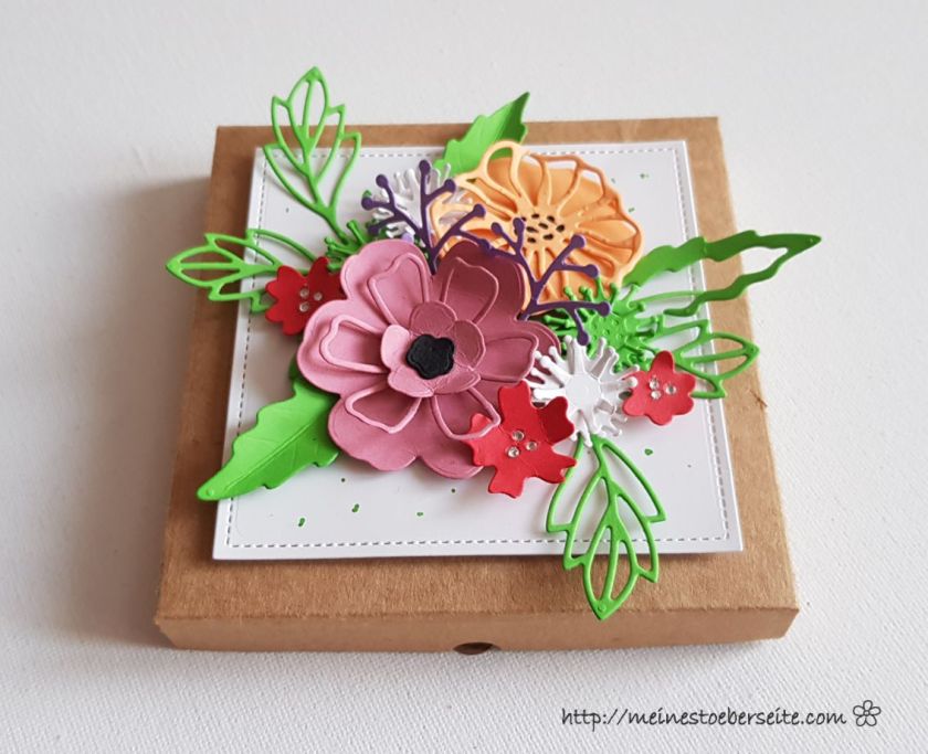 Deshalb habe ich mich immer gefreut, wenn ich mal wieder eine Produktbestellung aufgeben konnte und damit die Abholung nicht so unpersönlich erfolgte, kreierte ich eine kleine DANKE Schachtel nach einem Blumenfoto von ihrer Homepage (Klick auf Foto) .