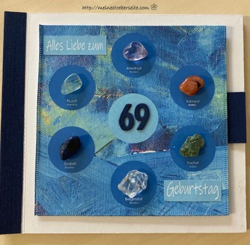Das Deckblatt hatte ich gar nicht mehr fotografiert, da ich es noch einmal neu gestalten musste, aber so sah es zum Schluss ungefähr aus. Auf die Platzhalter kamen noch die Heilsteine.