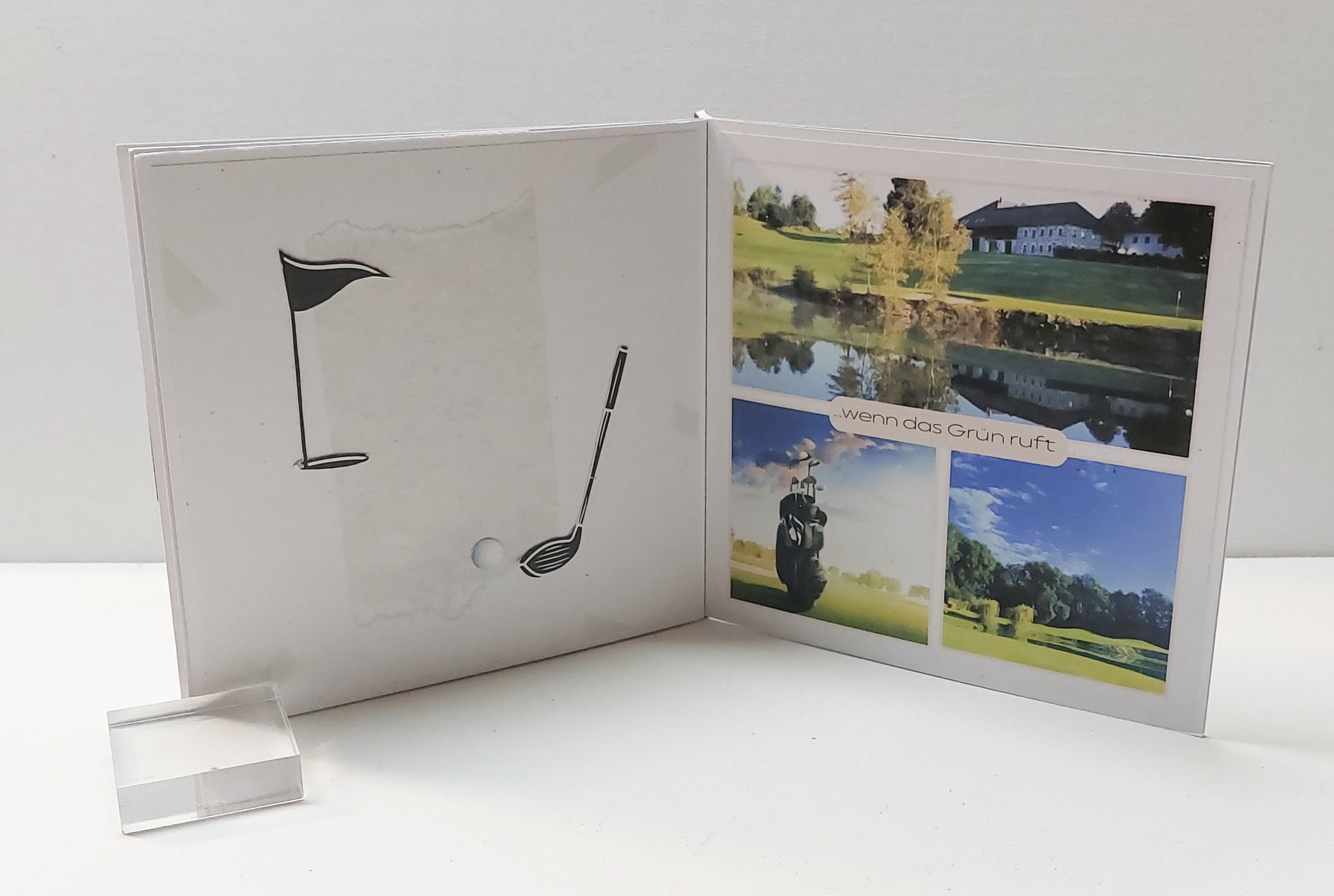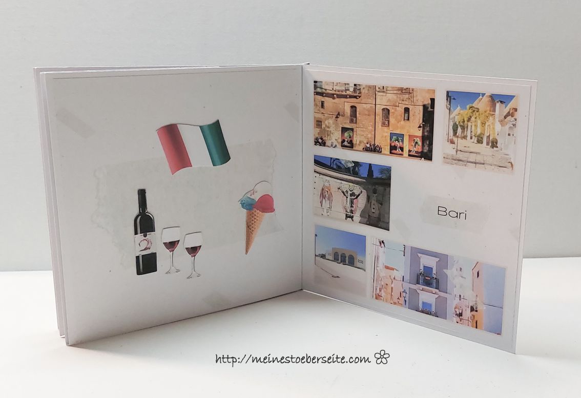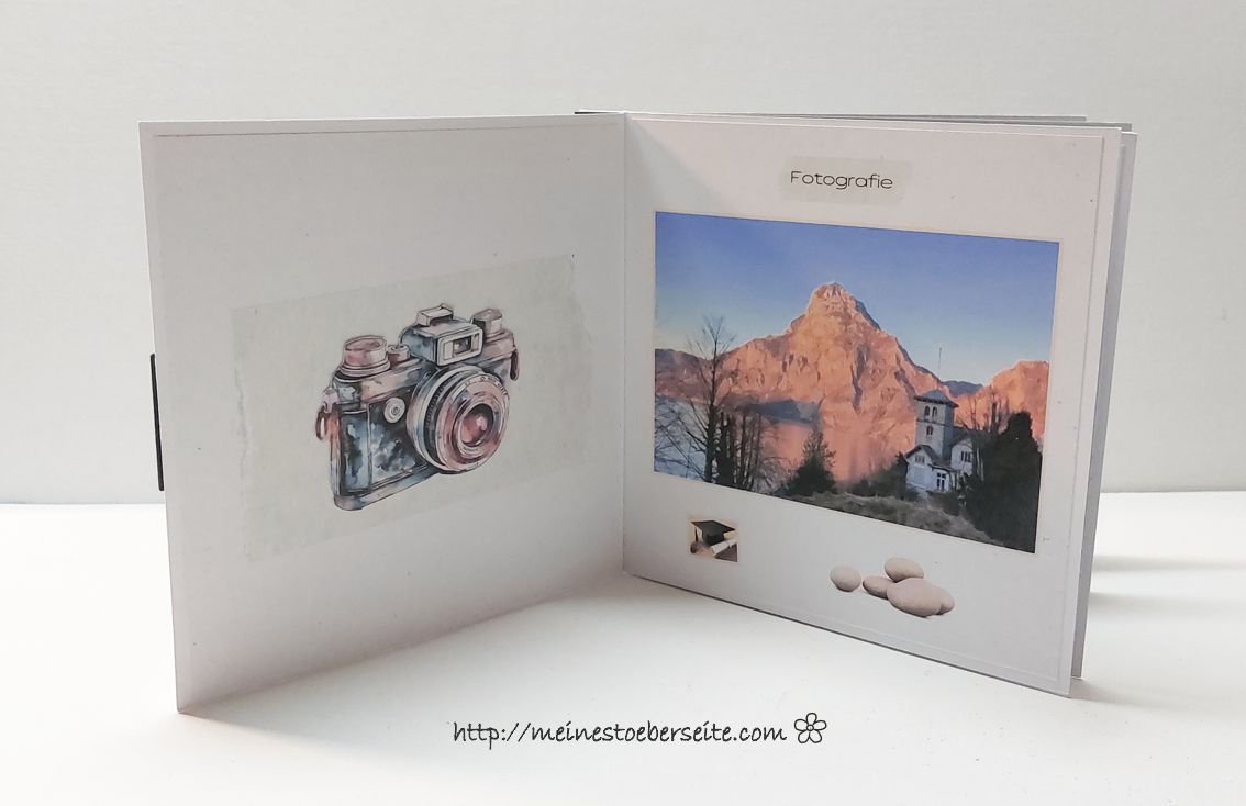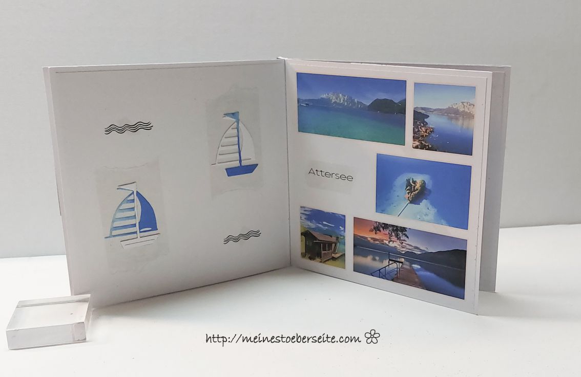 ich muss ja sagen, dieses Projekt hat Schweißperlen gekostet. Erst einmal dauerte es, bis das Layout gefunden war und dann habe ich immer wieder Probleme mit Fotos. Entweder habe ich ein schlechtes Bearbeitungsprogramm oder es fehlt einfach an Talent. Die Vorgaben waren eine kleine Erinnerung in Form einer Karte zu fertigen, die folgende Themen beinhalten sollte: Fotografie, Segeln auf dem Attersee, Golf, die Liebe zu Bari in Italien und Heilsteine. Der Beschenkte ist sehr der Fotografie zugetan und jetzt kommen meine Fotos ins Spiel….soll ja nur symbolisch sein…aber die Qualität lässt ein Profiherz glaube ich schmerzen. Noch einmal dazu gesagt, es waren qualitativ hochwertige Fotos … nun gut, hoffentlich gefällt es trotzdem.