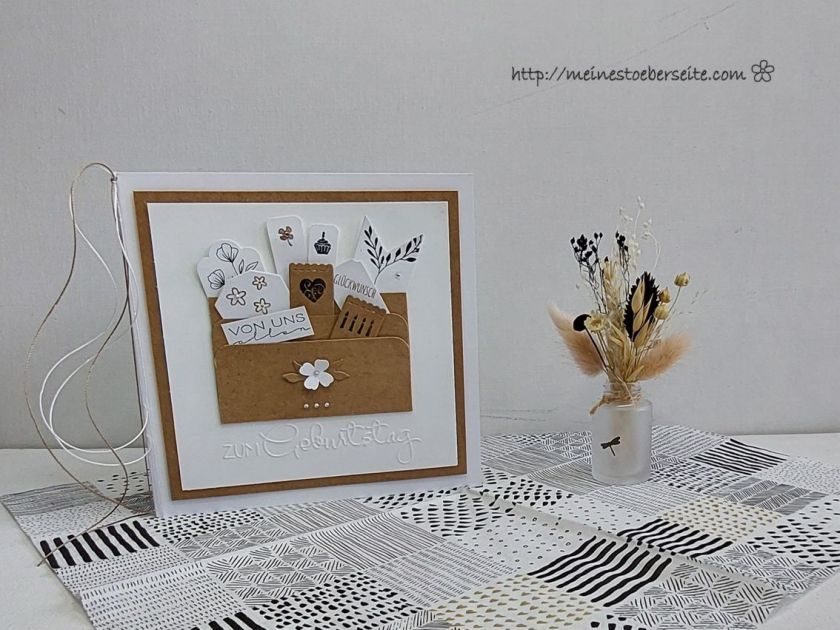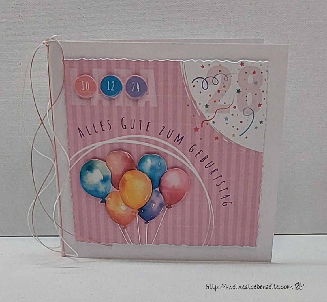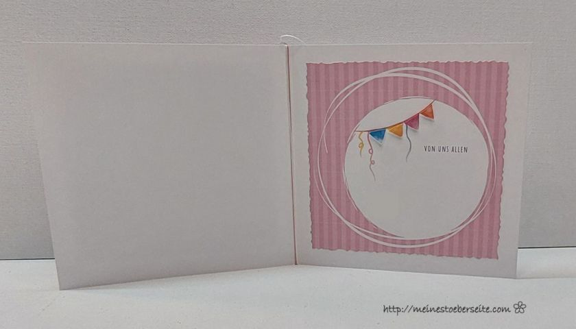 Auf der Rückseite wurde ein Umschlag für persönliche Worte und Geld integriert. Die Idee hatte ich auf YouTube entdeckt und möchte mich herzlich dafür bedanken.