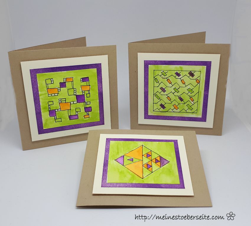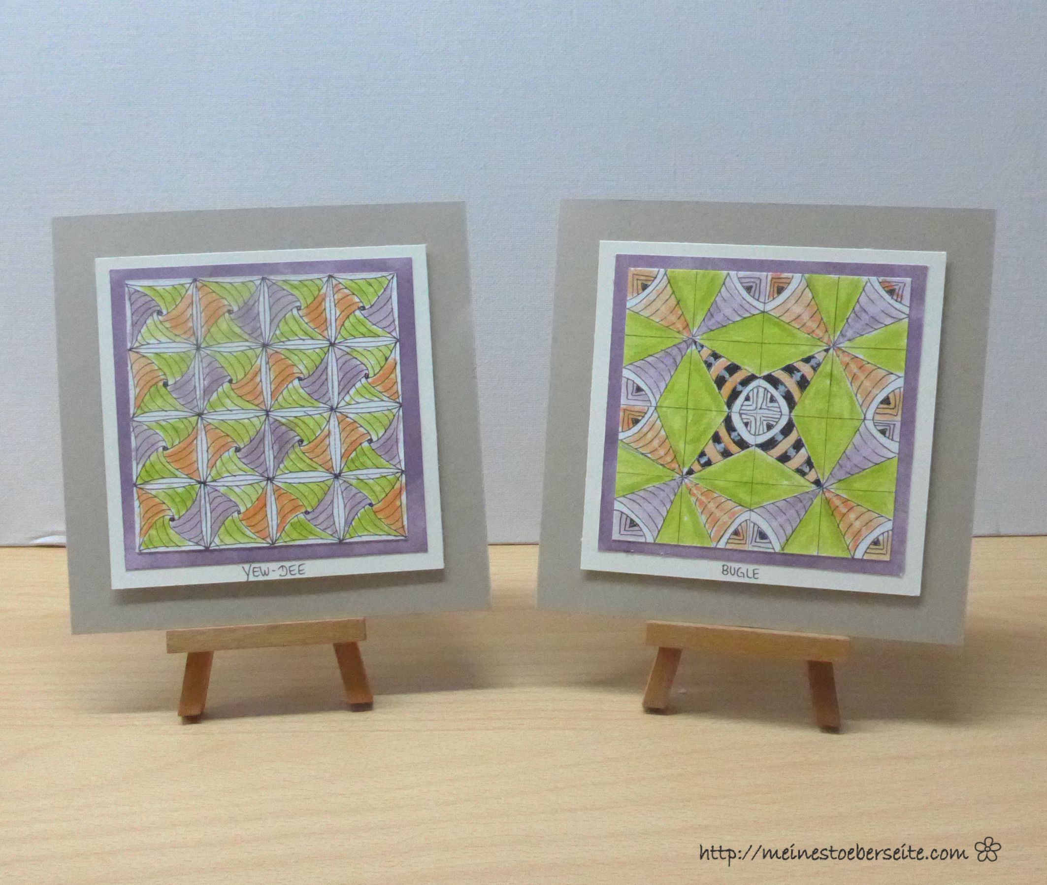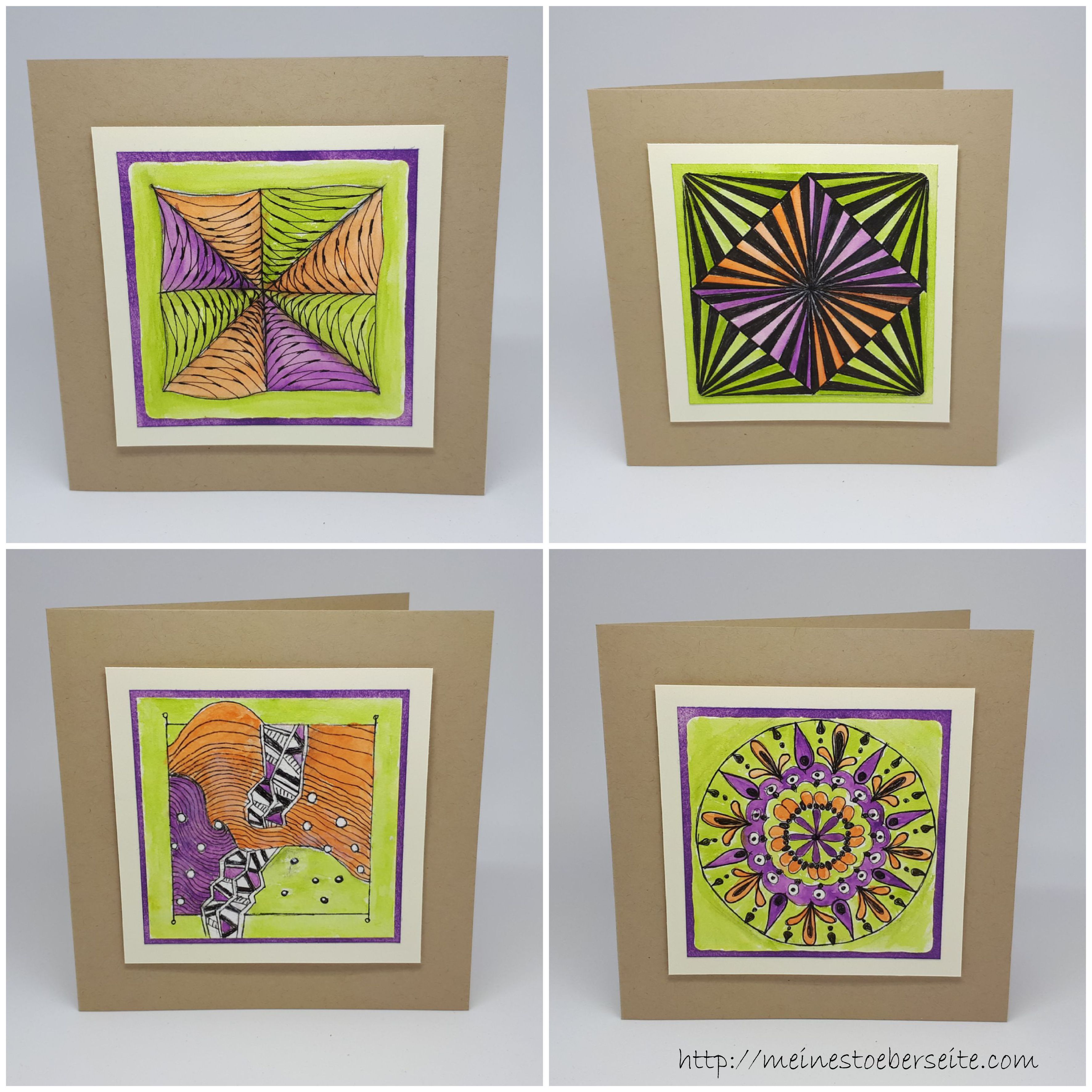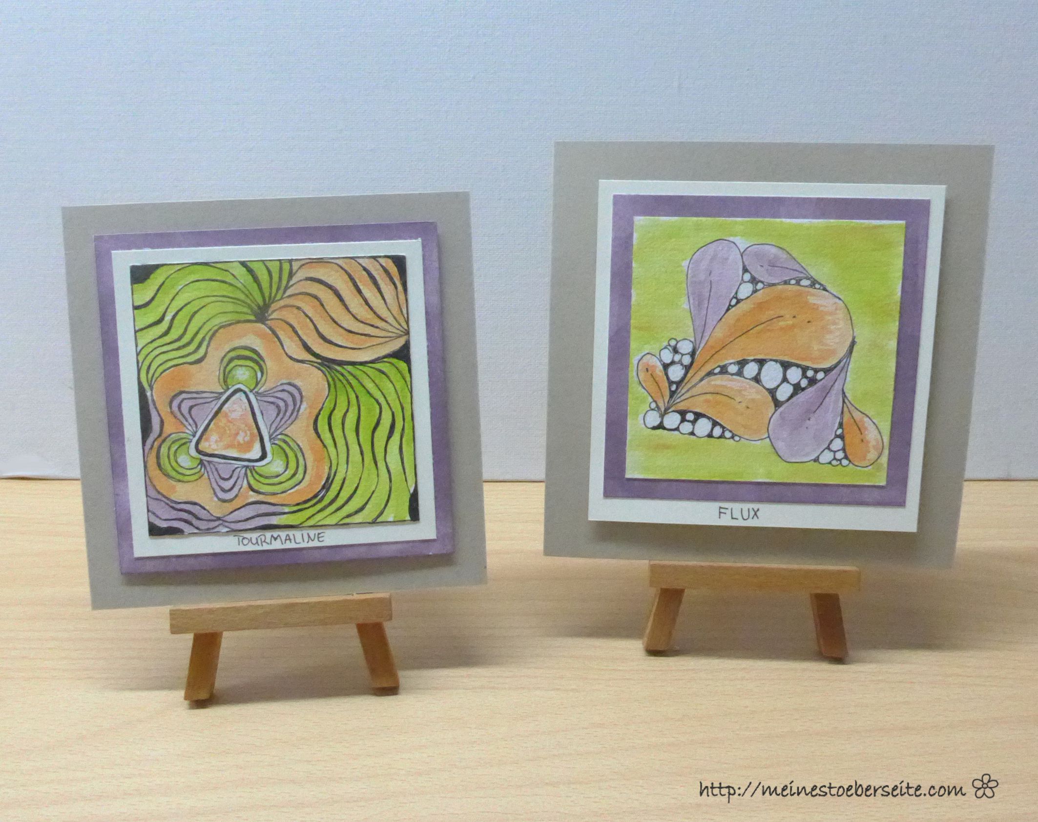 Ich brauchte wieder Gutscheinkarten und da die Zentangle-Motive gut ankommen, bin ich erst einmal dabei gebleiben.