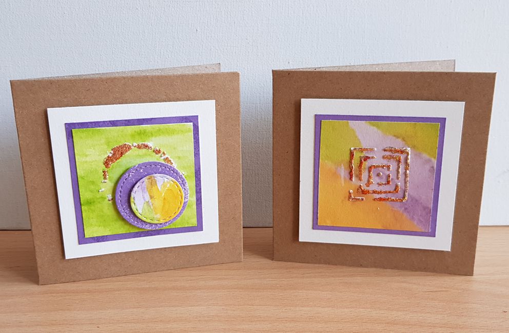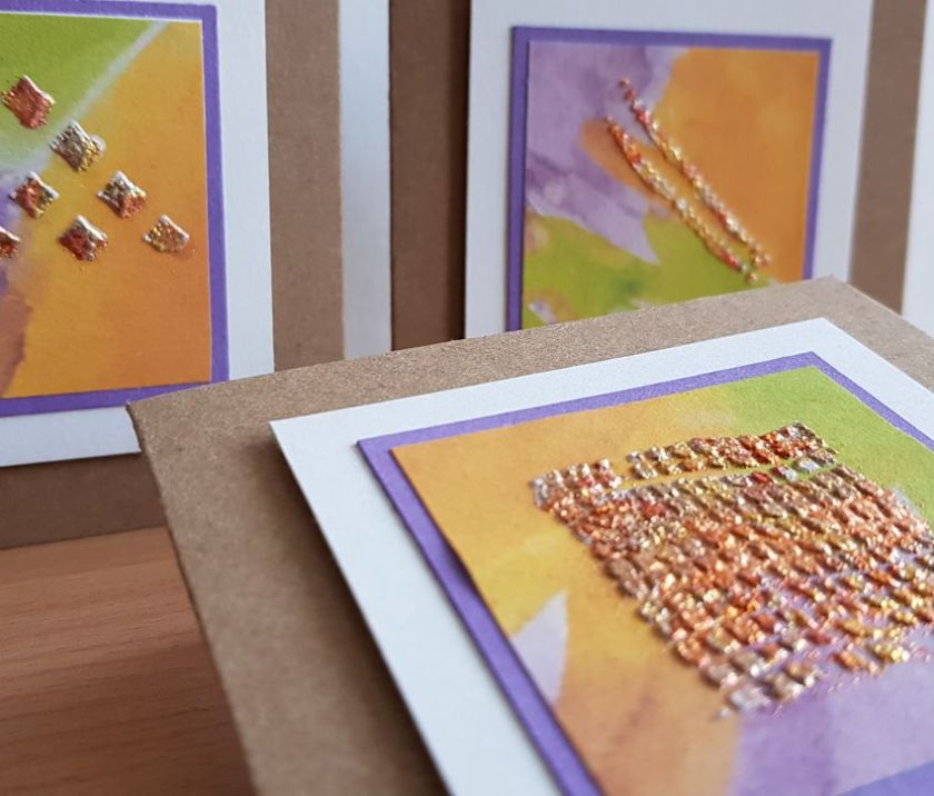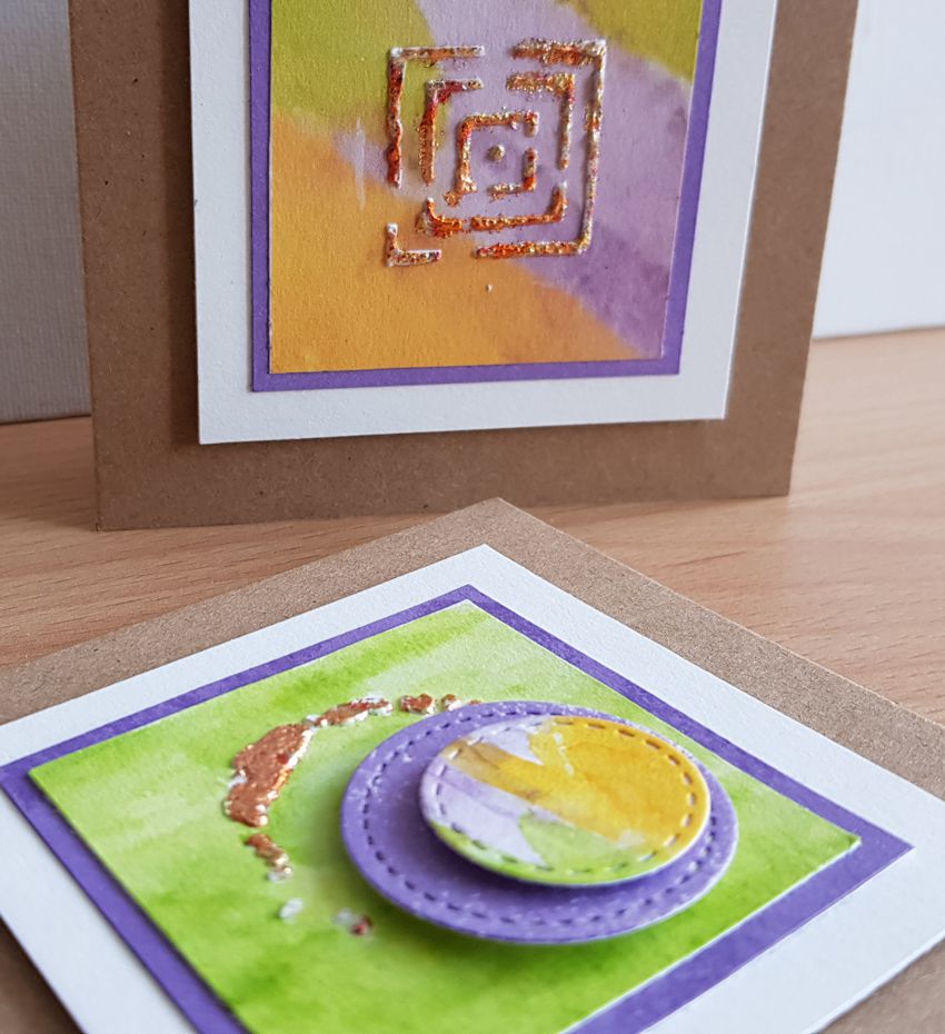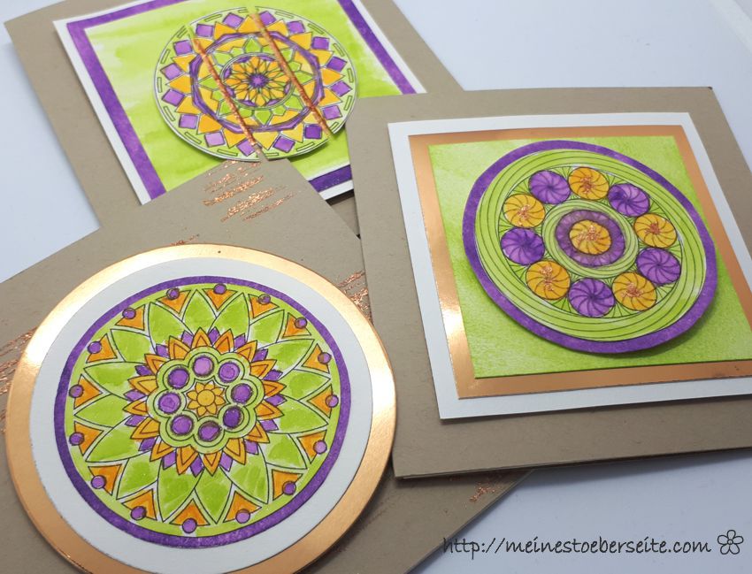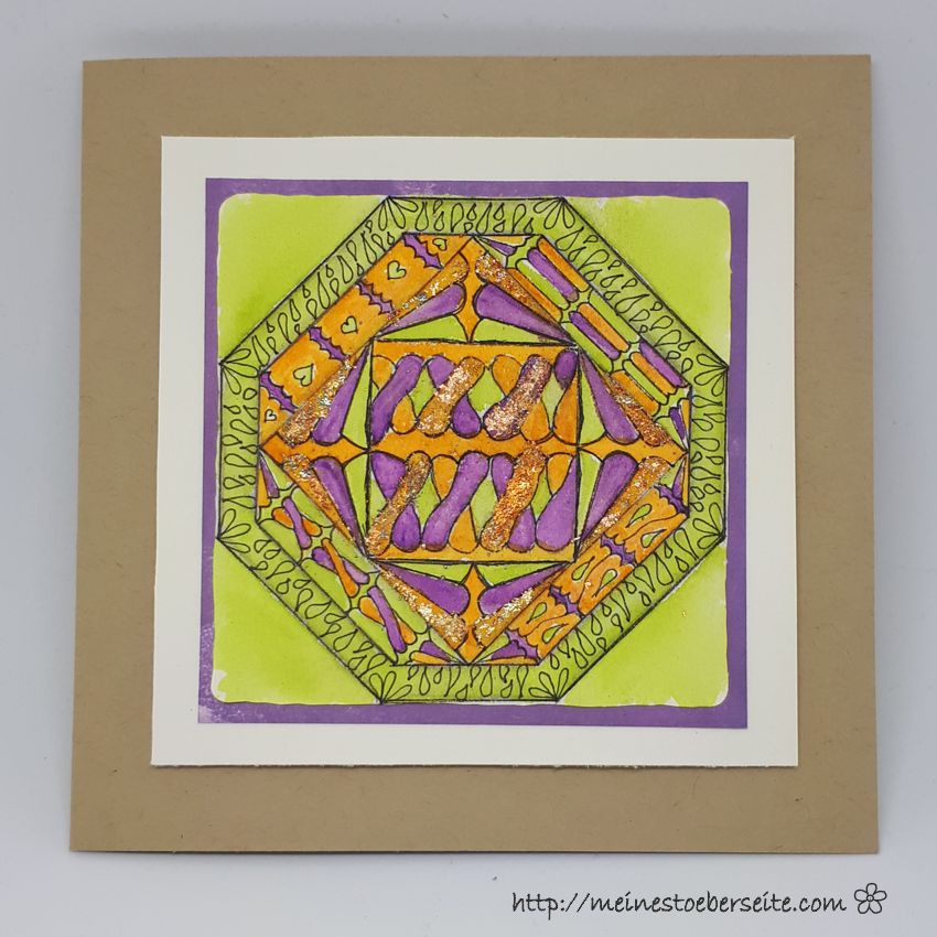 Dieses Mal wieder Zentangle, Aquarell Technik, Strukturpaste und Kupferflocken