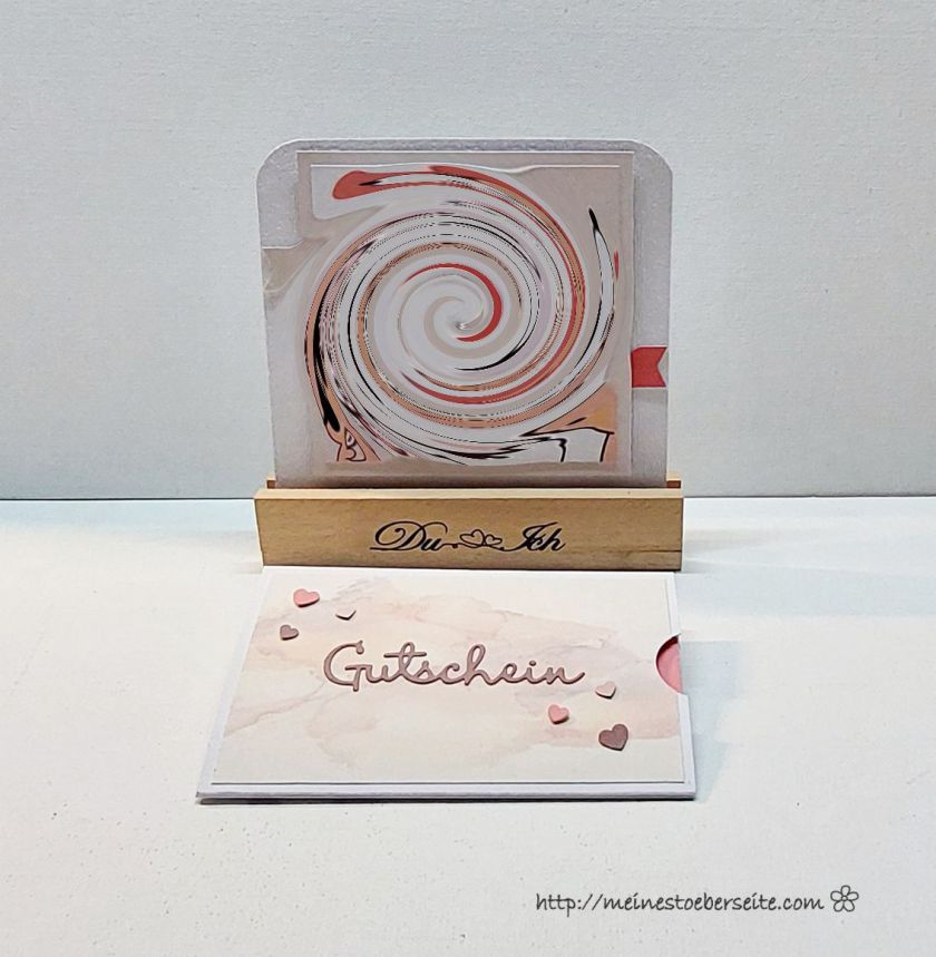 Für die Vorweihnachtszeit mal wieder Gutscheinkarten. Zum Glück hatte ich immer mal wieder eine vorbereitet, somit ging die Fertigstellung verhältnismäßig schnell.