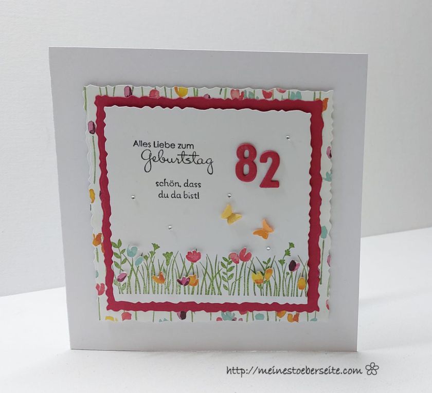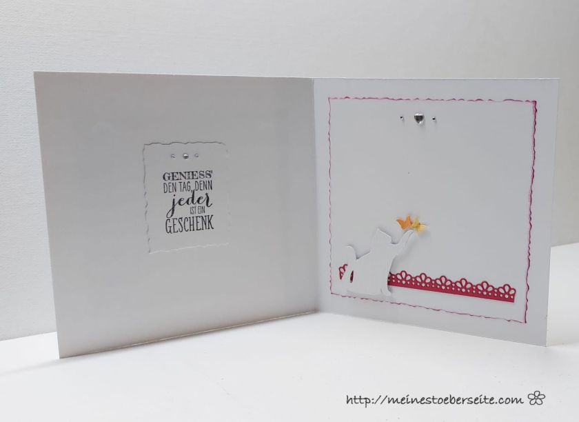 Da hatte ich jetzt nicht ganz so viele Ideen, aber ich fand noch ein Designerpapier mit kleinen Tulpen und die Katze sollte natürlich nicht so kindlich dargestellt werden.