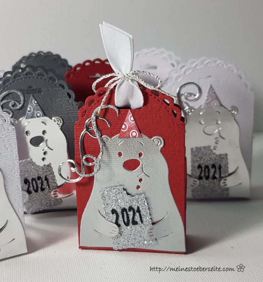 Die Weihnachts-Tütchen waren kein Problem, aber irgendwie wollte ich für Silvester etwas Passenderes kreieren und dann kam mir die Idee mit der anderen Keksform u. der Jahreszahl (WERBUNG:Silhouette Cameo sei Dank), dem Hütchen und den Luftschlangen. Jetzt bin ich zufrieden 👏