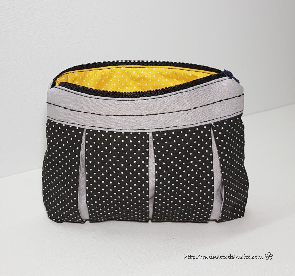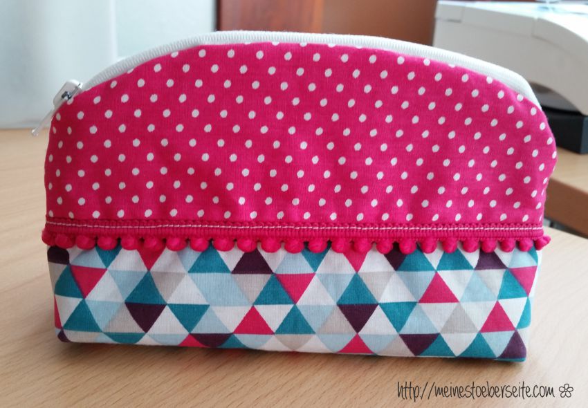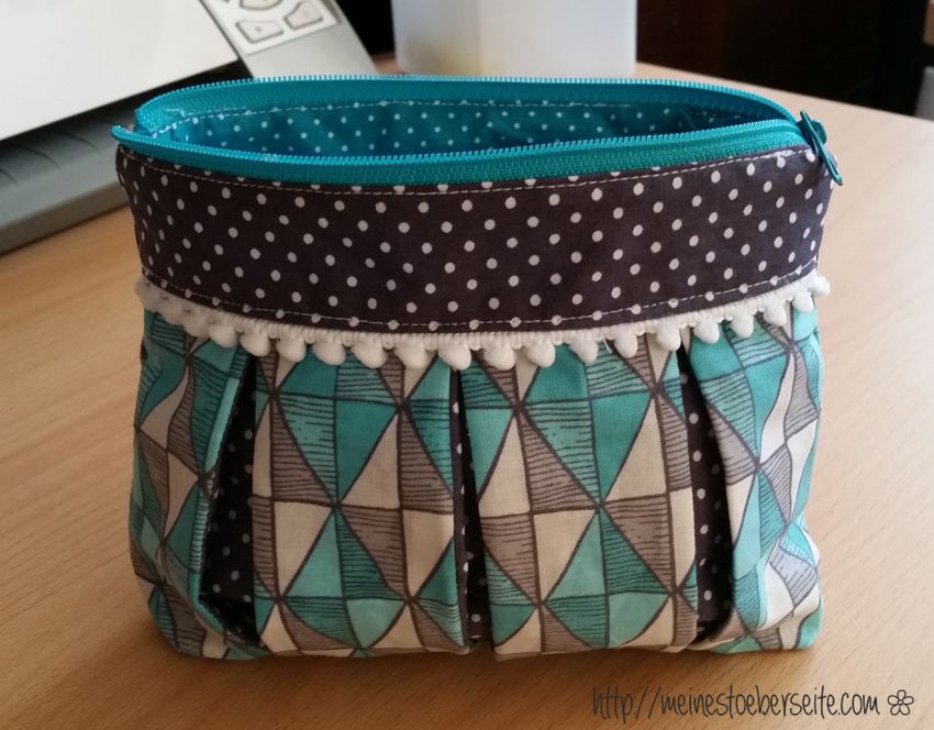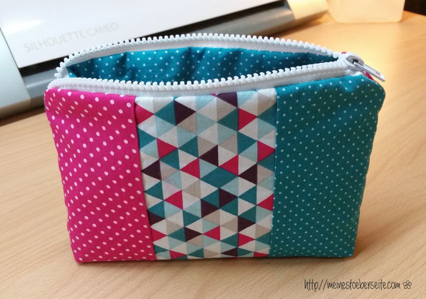 Allerdings konnte ich mir am Freitag endlich meine neue Nähmaschine abholen. Nach 2stündiger Einweisung und anschließend rauchendem Kopf habe ich dann am Samstag versucht..dass was mir gezeigt wurde.. auszuprobieren. Heraus kam, aus der Testphase geboren, eine kleine Kosmetiktasche. Stoffreste habe ich ja im Moment genug. 😉