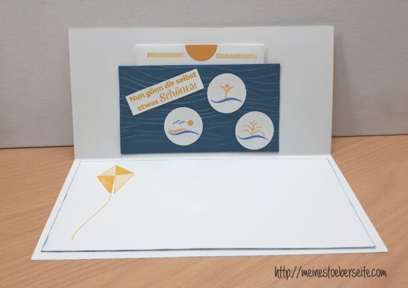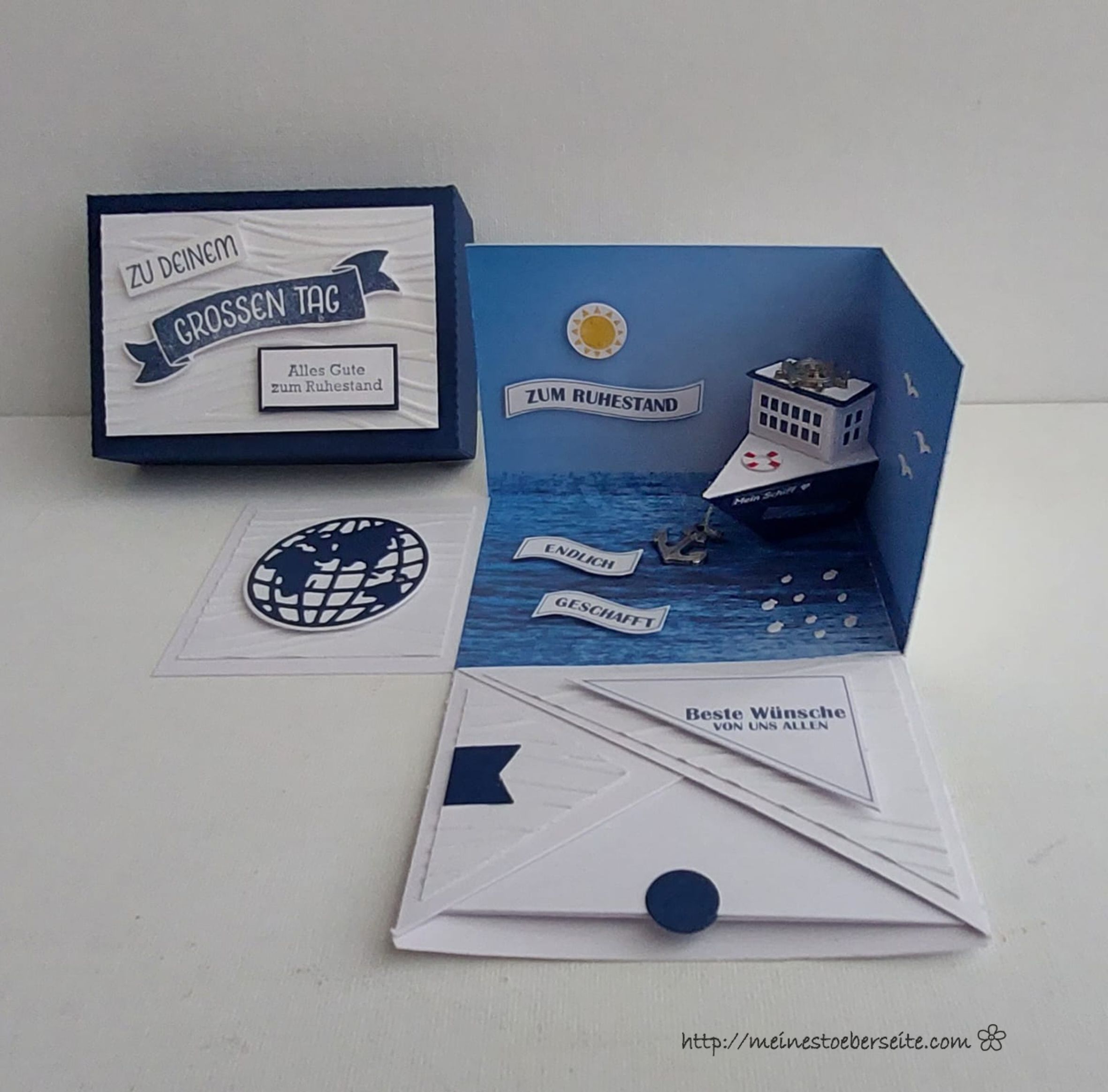 Der Kartenwunsch lautete etwas Maritimes, allerdings kleine Schiffe hatte ich jetzt schon des öfteren gemacht und da kam mir diese Idee in Erinnerung und warum soll man etwas komplett ändern, wenn es gut ist.
