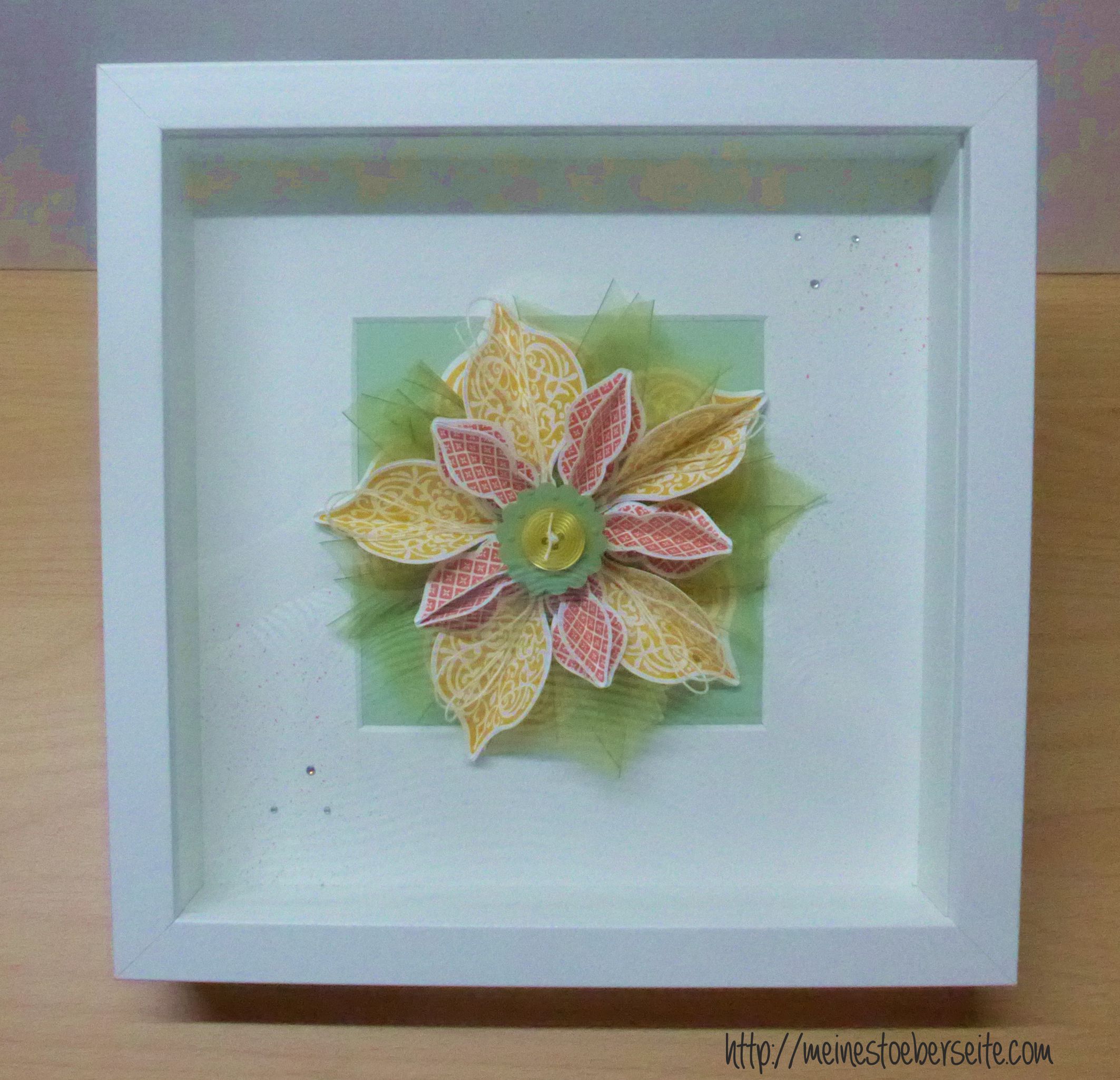 Diese Idee mit dem Ornament liegt schon einige Zeit zurück, aber als Wanddeko immer mal wieder gewünscht und dieses Mal habe ich einfach Designpapier gestanzt, dadurch wirkt es dann auch nicht mehr so weihnachtlich. 😉