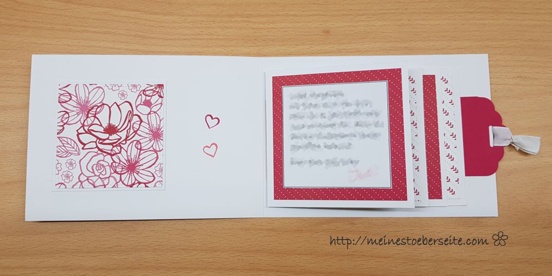 Es handelt sich in diesem Fall um eine Wasserfallkarte, durch ziehen am Band, blättert die Karte wie ein Wasserfall auf.