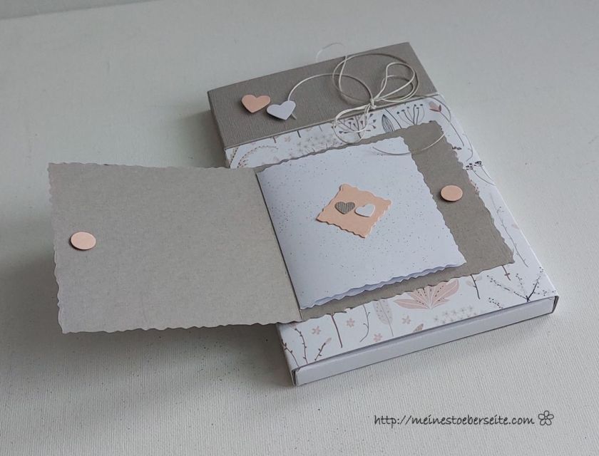Erneut ein Grund tätig zu werden und in diesem Fall hatte ich mich für eine Merci- (WERBUNG) Schiebeschachtel mit kleinen passenden Botschaften entschieden. Idee und Maße HIER .