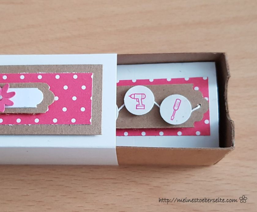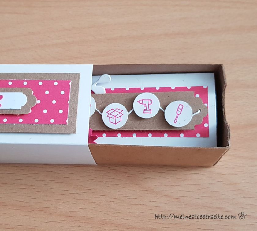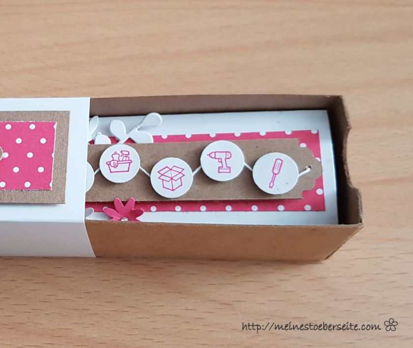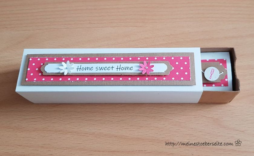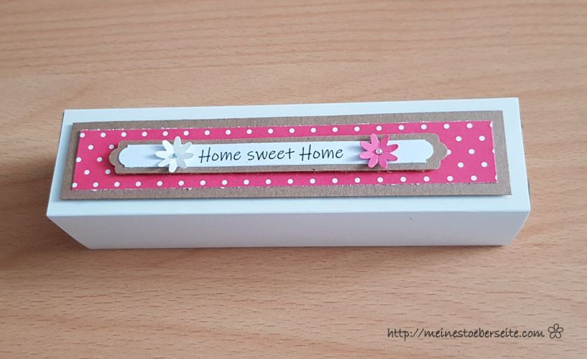 Es handelte sich um eine Schachtel mit der Aufschrift Home sweet Home und darin enthalten war eine Kerze mit aufgedruckten Häusern.
