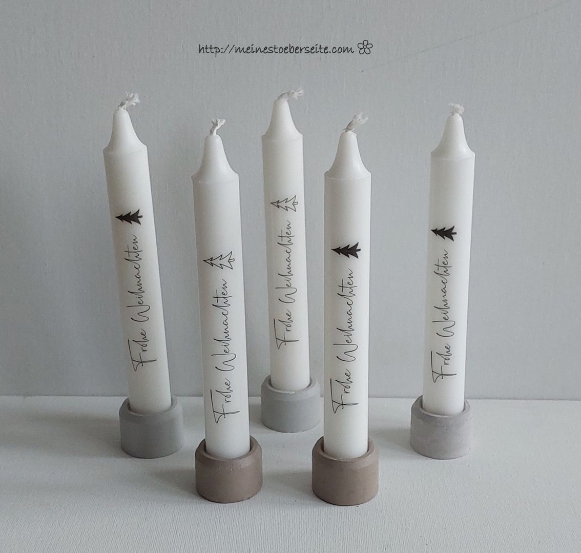 Desweiteren passende Kerzen mit selbst hergestelltem Halter inkl. selbst aufgebrachter Kerzentattoofolie und kleine Häuschen gefüllt mit Schokokugeln.