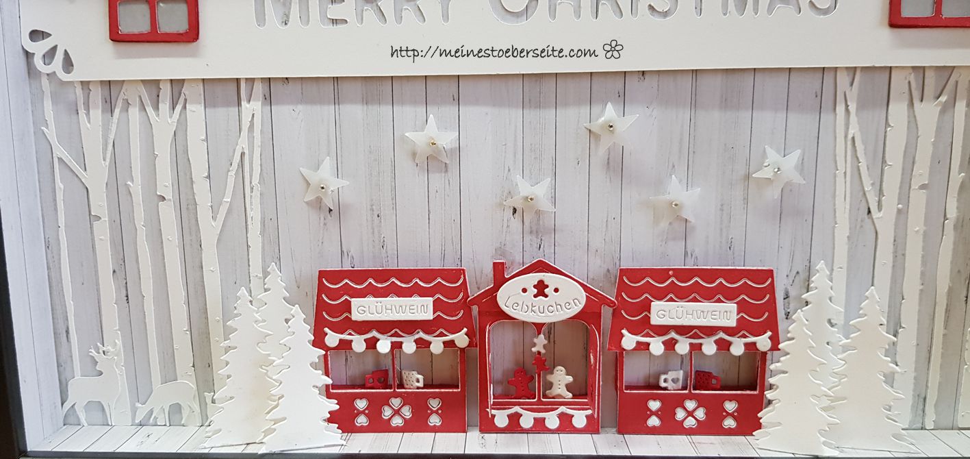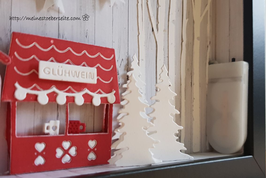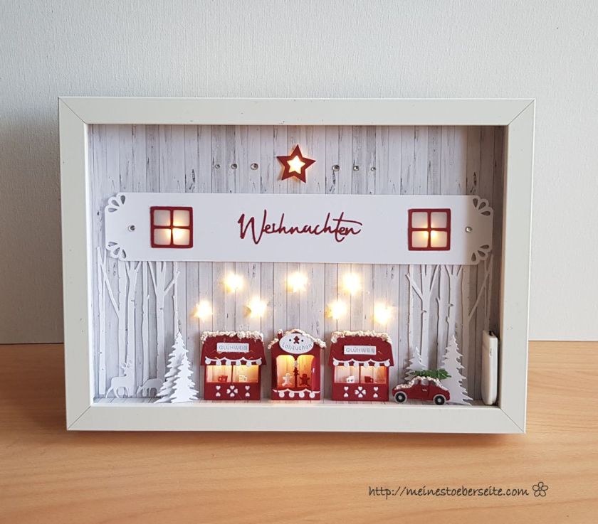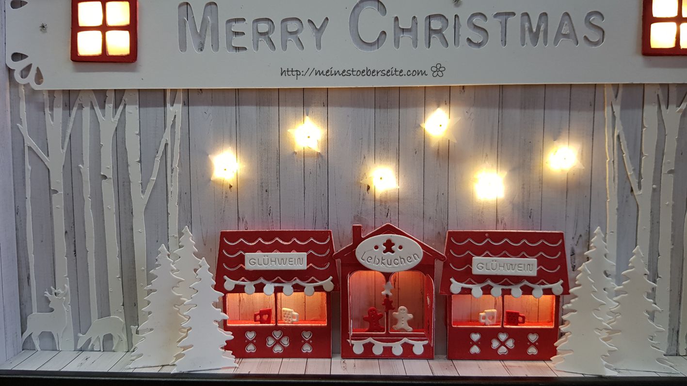 Die kleinen (WERBUNG) Weihnachtsbuden von Charlie u.Paulchen werden gemocht und unsere Tochter hatte den Wunsch, dass ich eine Beleuchtung integriere.